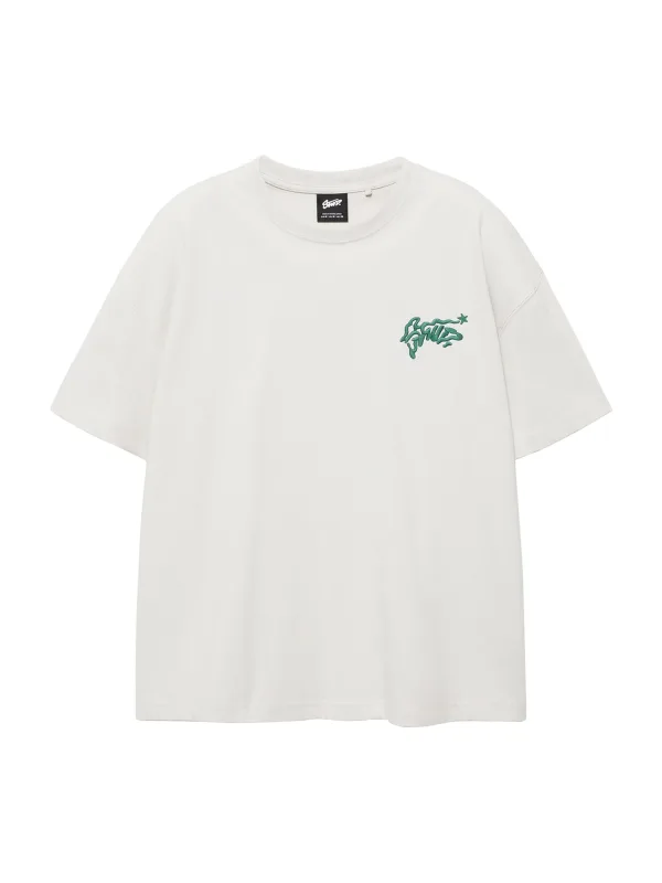 Specificaties: Pull&Bear Shirt ‘STWD COMMUNITY’ crème / smaragd / zwart