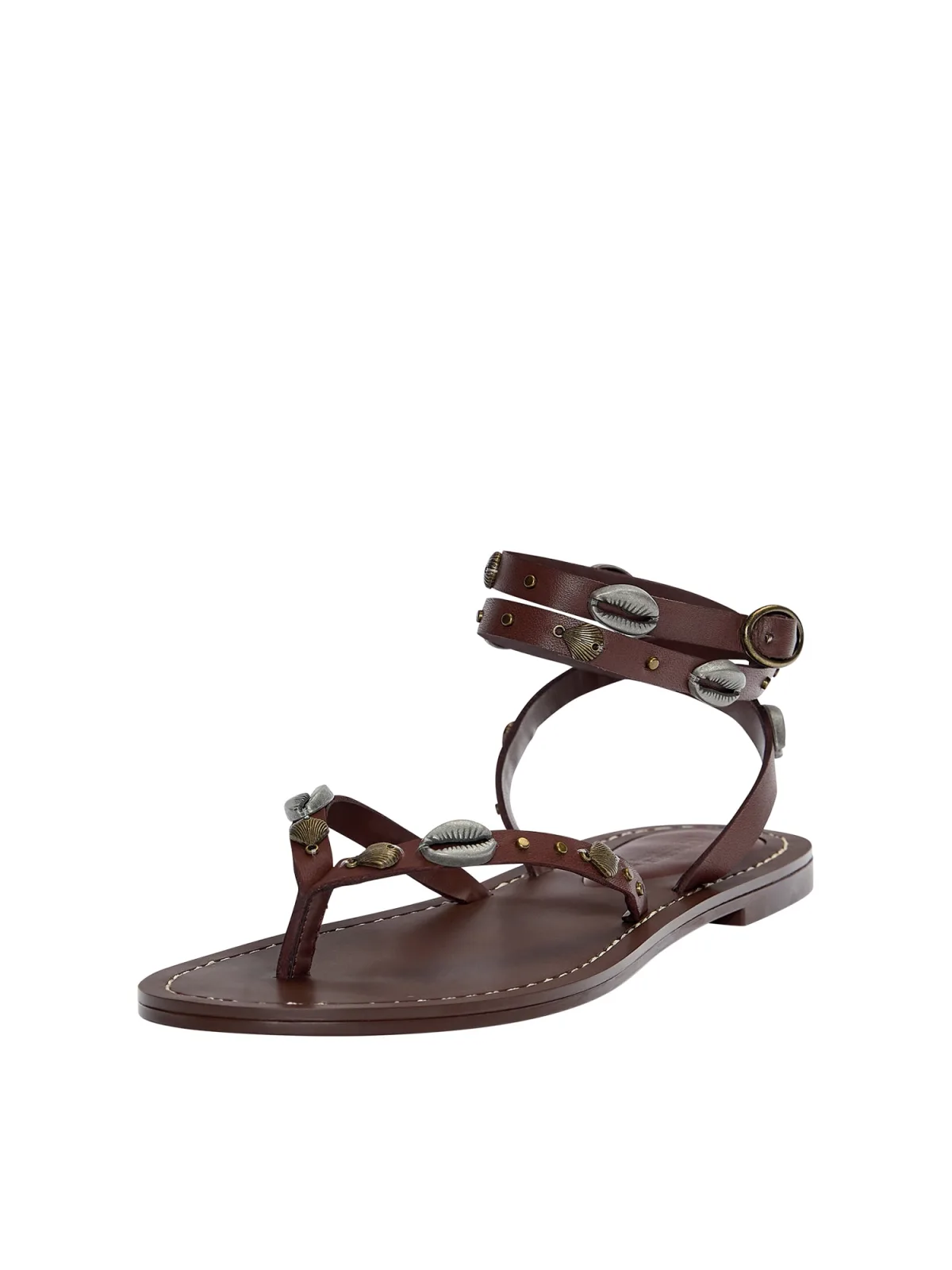 Design: Profielzolen, Verstelbare riemen, Versterkte hak; Type sluiting: Riemsluiting; Materiaal: Leer; Motief: Effen; Materiaal: Glad leer; Schoenneus: Open toe; Extra's: Studs, Applicaties, Flexibele zool; Hakhoogte: Platte hak (0-3 cm)