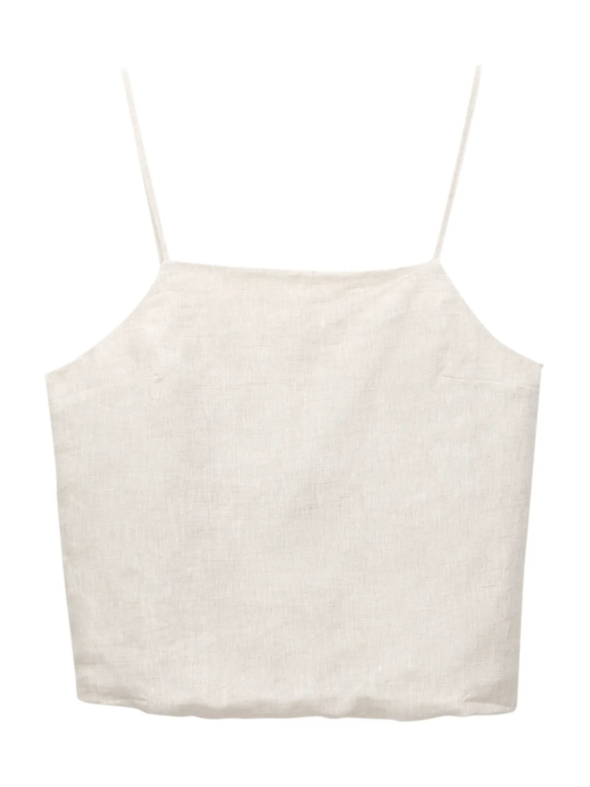 Design: Gevoerde zoom/rand, Om te knopen/binden; Materiaal: Linnen; Halstype: Carréhals; Motief: Effen; Soort bandjes: Spaghettibandjes; Extra's: Verstelbare bandjes, Lichte stof; Pasvorm: Normale pasvorm; Armlengte: Mouwloos; Lengte: Normale lengte