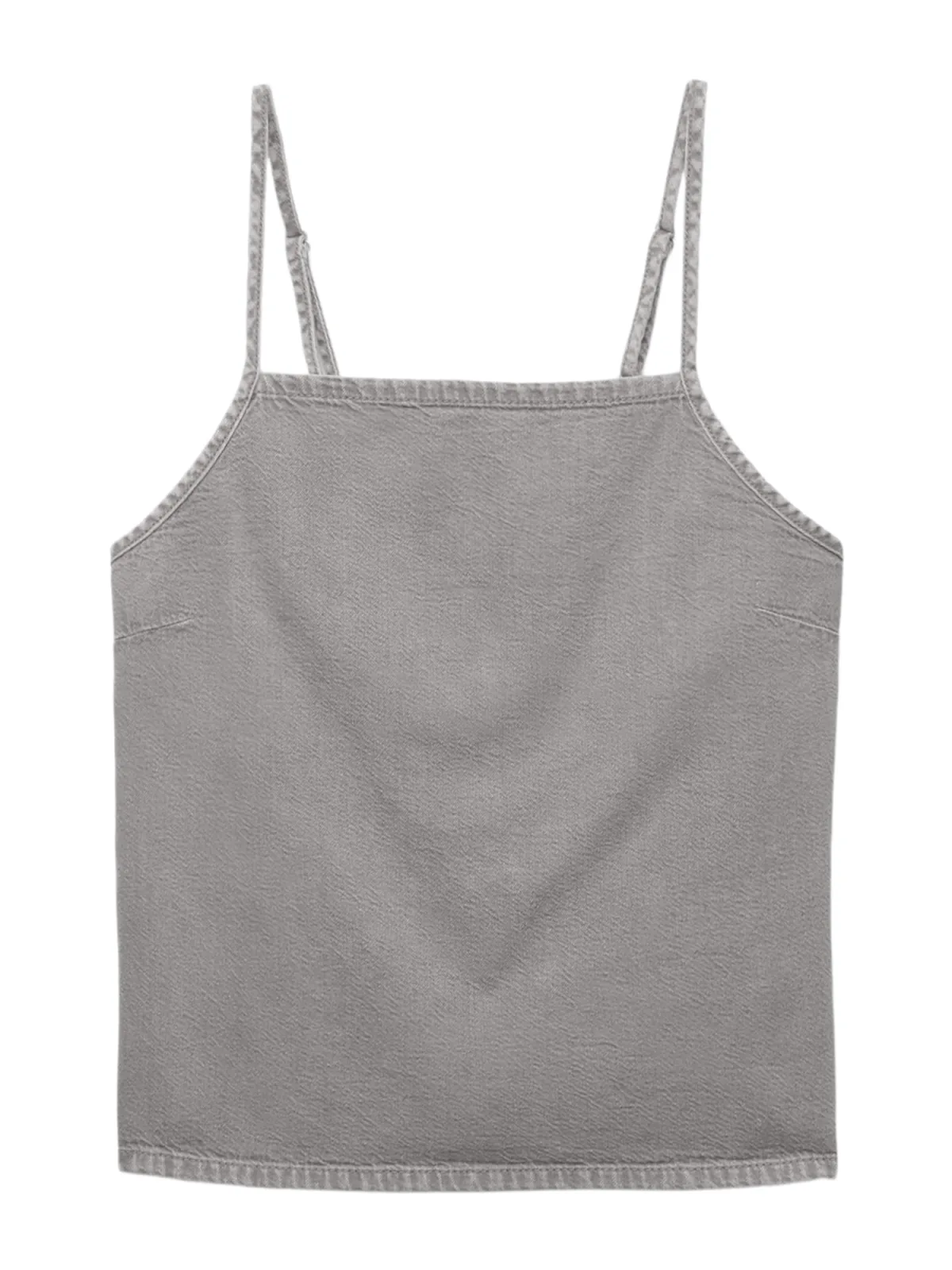 Design: Gevoerde zoom/rand, Figuurnaden, Om te knopen/binden, Ingelegde kraag; Materiaal: Denim; Halstype: Carréhals; Motief: Effen; Soort bandjes: Spaghettibandjes; Details: Backless; Extra's: Verstelbare bandjes, Op staal naden, Gewassen effect; Pasvorm: Slanke pasvorm; Armlengte: Mouwloos; Lengte: Normale lengte