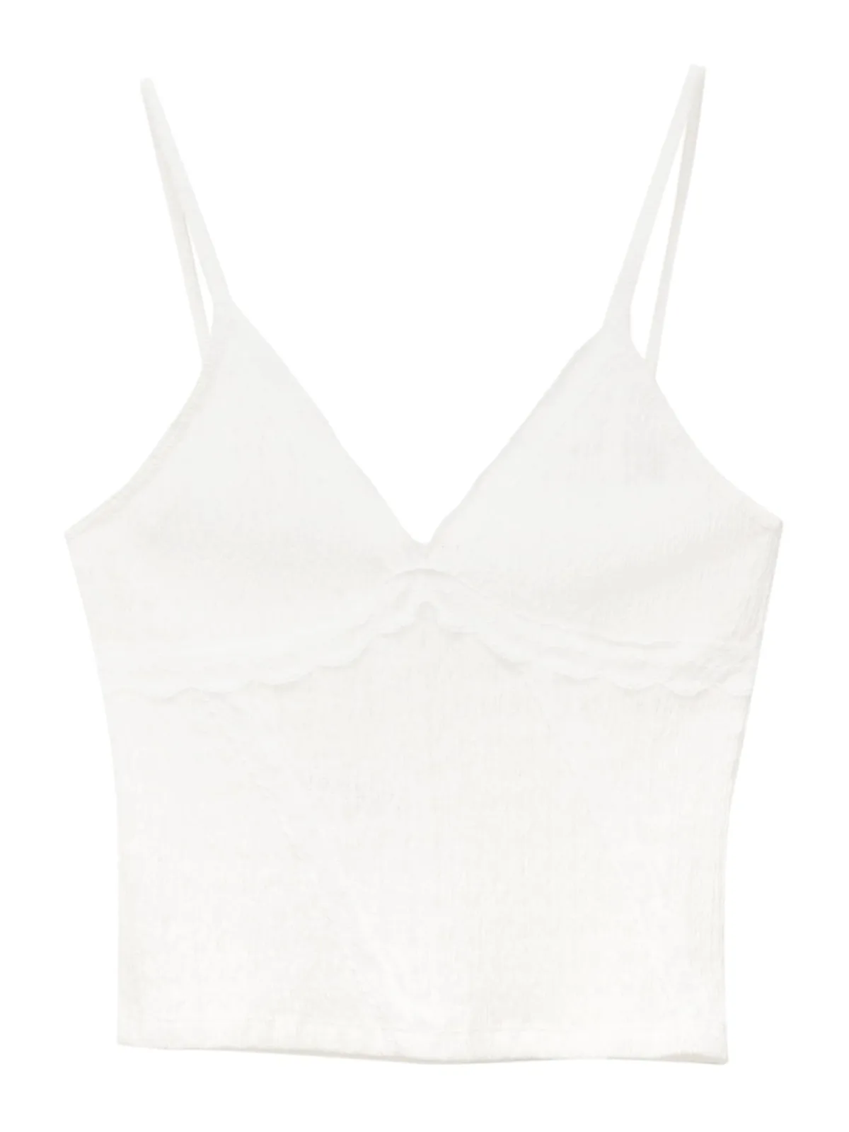 Design: Gevoerde zoom/rand, Rechte zoom, Diepe snit/decolleté; Materiaal: Katoen; Halstype: V-hals; Motief: Effen; Soort bandjes: Spaghettibandjes; Details: Kant; Extra's: Op staal naden, Voelt zacht aan; Pasvorm: Slanke pasvorm; Armlengte: Mouwloos; Lengte: Korte pasvorm