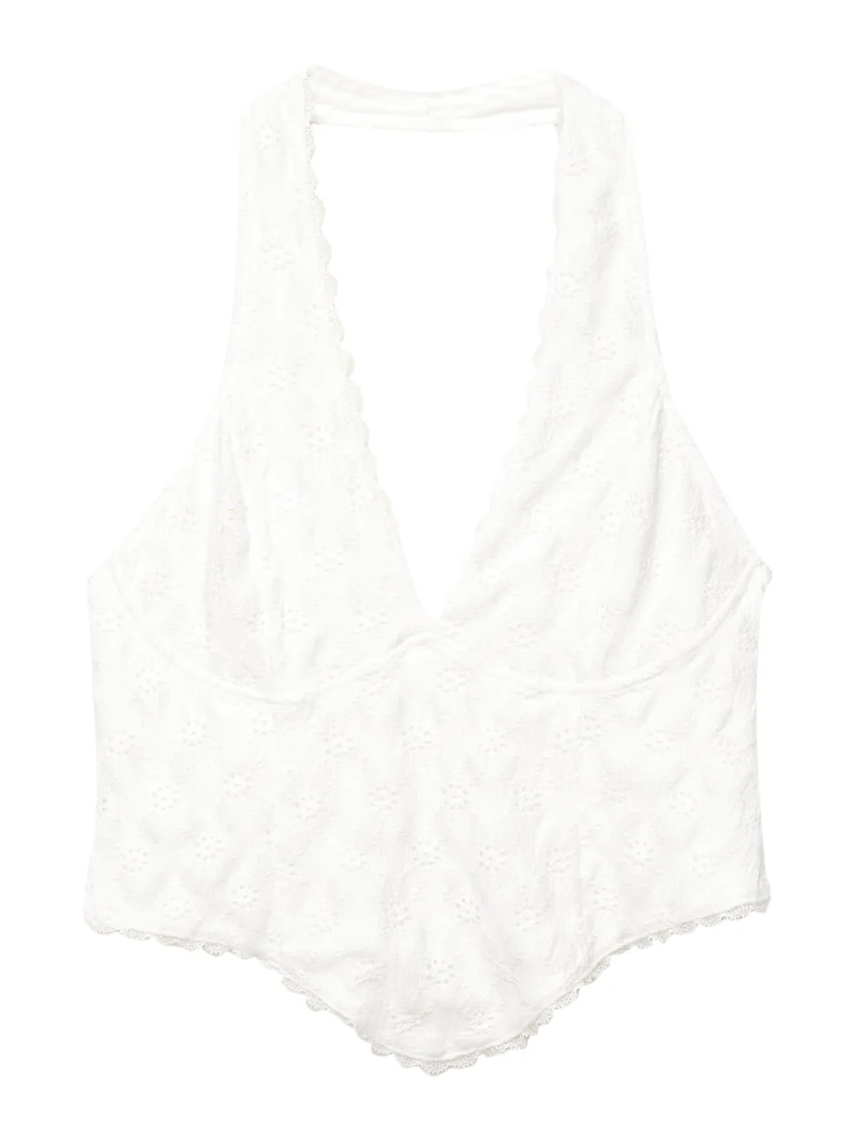 Design: Zoom/rand met boord, Uitgesneden rug; Materiaal: Jersey; Motief: Effen; Soort bandjes: Haltermodel; Details: Borduursels; Pasvorm: Slanke pasvorm; Armlengte: Mouwloos; Lengte: Korte pasvorm
