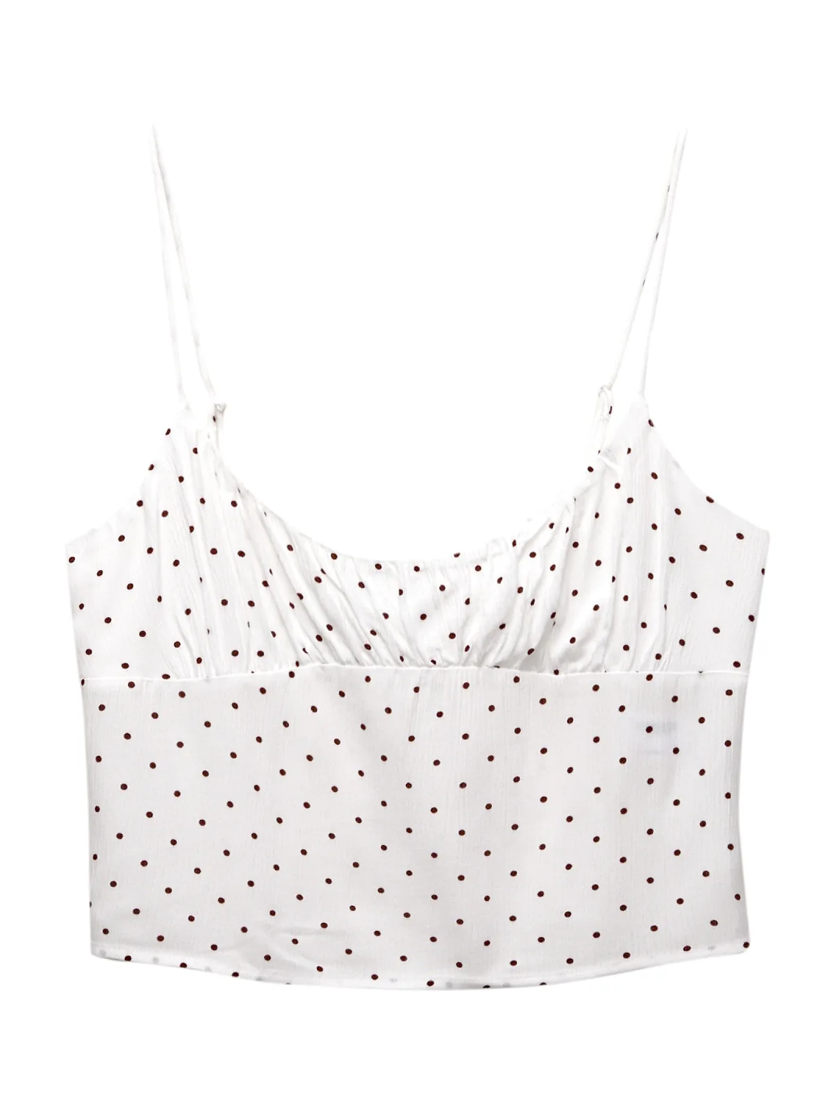 Design: Gevoerde zoom/rand, Rechte zoom; Materiaal: Viscose; Motief: Gestippeld; Soort bandjes: Spaghettibandjes; Details: Gedrapeerd; Extra's: Verstelbare bandjes, All-over patroon, Voelt zacht aan; Pasvorm: Normale pasvorm; Armlengte: Mouwloos; Lengte: Normale lengte