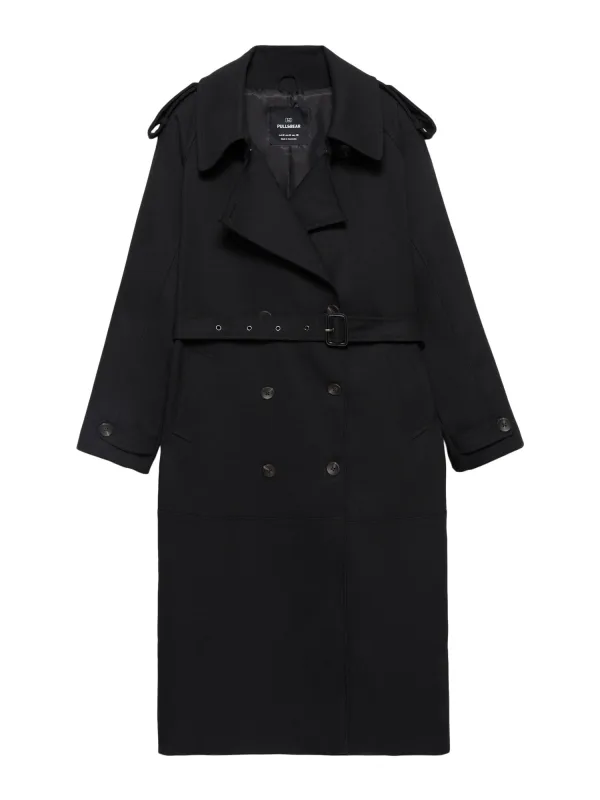 Type mantel: Trenchcoat; Design: Rechte zoom, Knop placket, Zakken aan de zijkant, Tailleriem; Type sluiting: Knoopsluiting; Voering: Licht gevoerd; Halstype: Reverskraag; Motief: Effen; Extra's: Op staal naden, Gladde stof, Riemlussen; Pasvorm: Losse pasvorm; Lengte: Lange pasvorm