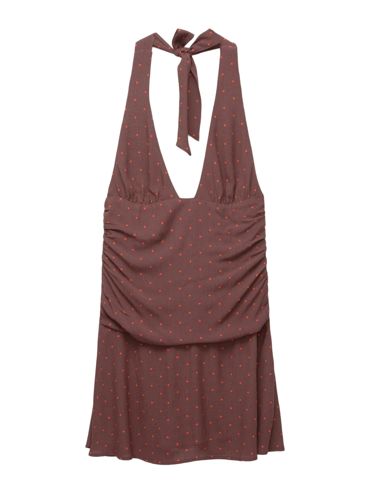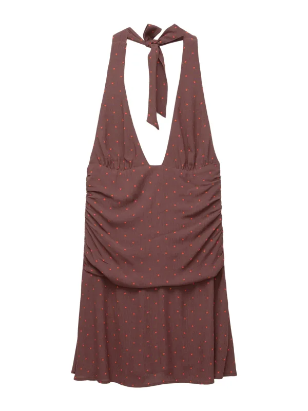Design: Gevoerde zoom/rand, Diepe snit/decolleté, Om te knopen/binden; Materiaal: Viscose; Halstype: V-hals; Motief: Gestippeld; Soort bandjes: Haltermodel; Details: Gedrapeerd; Extra's: All-over patroon, Koele grip; Lengte: Kort/mini; Snit: Getailleerd; Pasvorm: Slanke pasvorm; Armlengte: Mouwloos