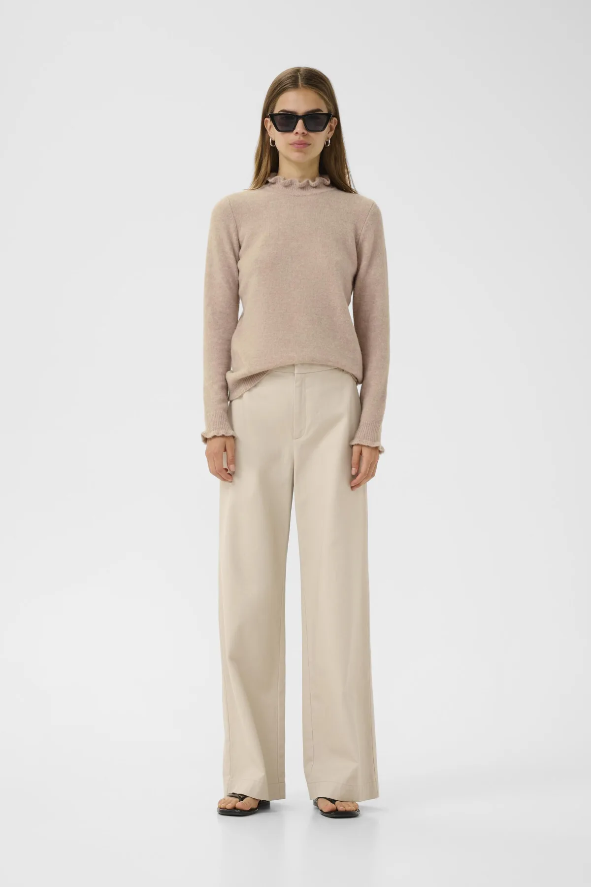 Dames gebreide trui met comfortabele pasvorm, lange mouwen en subtiel geplooide halslijn. Zachte stof, geschikt voor dagelijks gebruik en lagen. Handwas, niet bleken, niet in de droger drogen, Liggend laten drogen., koud strijken max. 110° C, 42% Polyester,26% Nylon,22% Wol,6% Alpaca,4% Elastaan