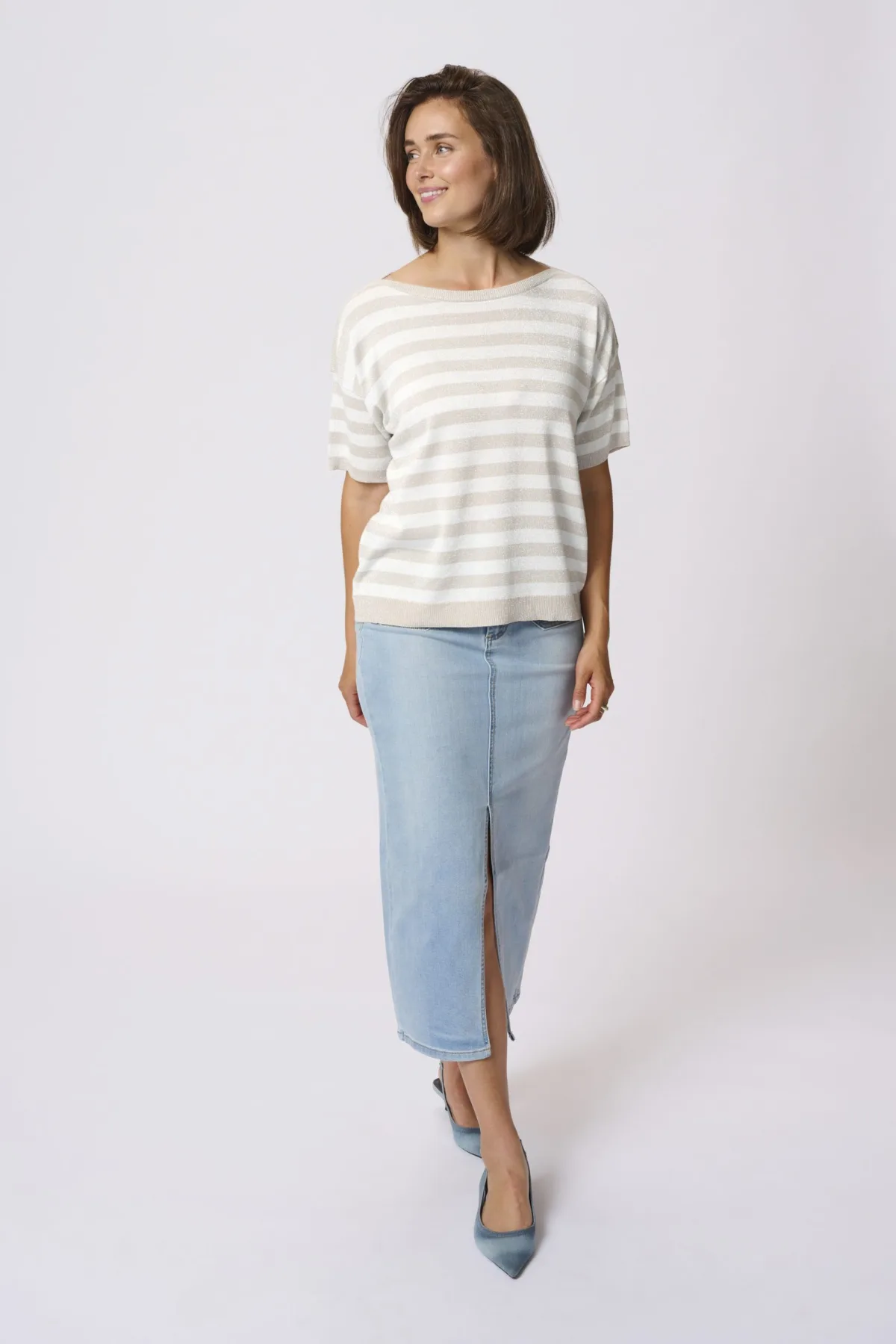 Design: Overcut schouder; Materiaal: Knitwear; Halstype: Boothals; Motief: Gestreept; Extra's: Voelt zacht aan; Pasvorm: Losse pasvorm; Armlengte: Halve mouw; Lengte: Normale lengte