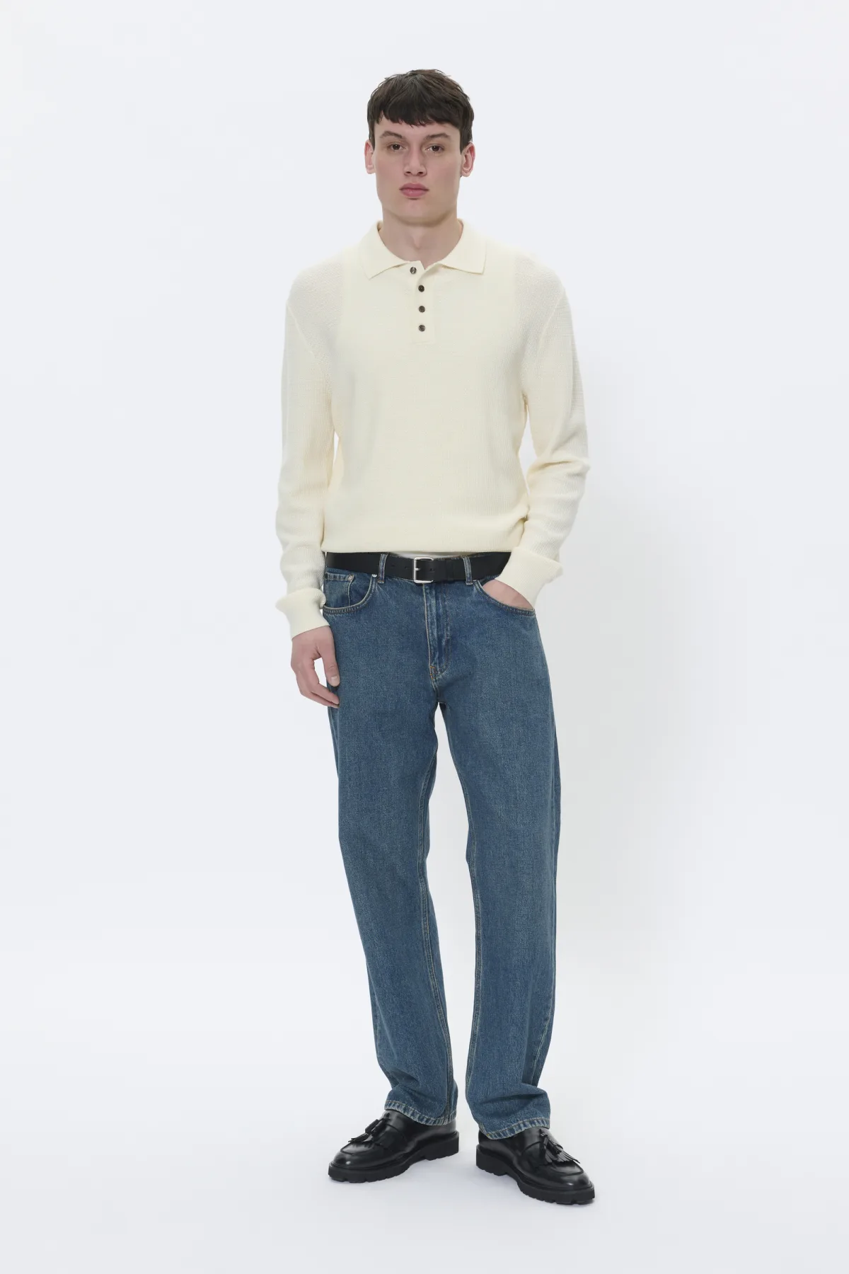 Deze heren gebreide polotrui heeft een klassieke kraag, lange mouwen en een regular fit. De knoopsluiting en structuur zorgen voor een tijdloze look en veel draagcomfort. Fijne was 30°, niet bleken, niet in de droger drogen, Liggend laten drogen in de schaduw, warm strijken max. 150° C, 59% Wol,41% Katoen