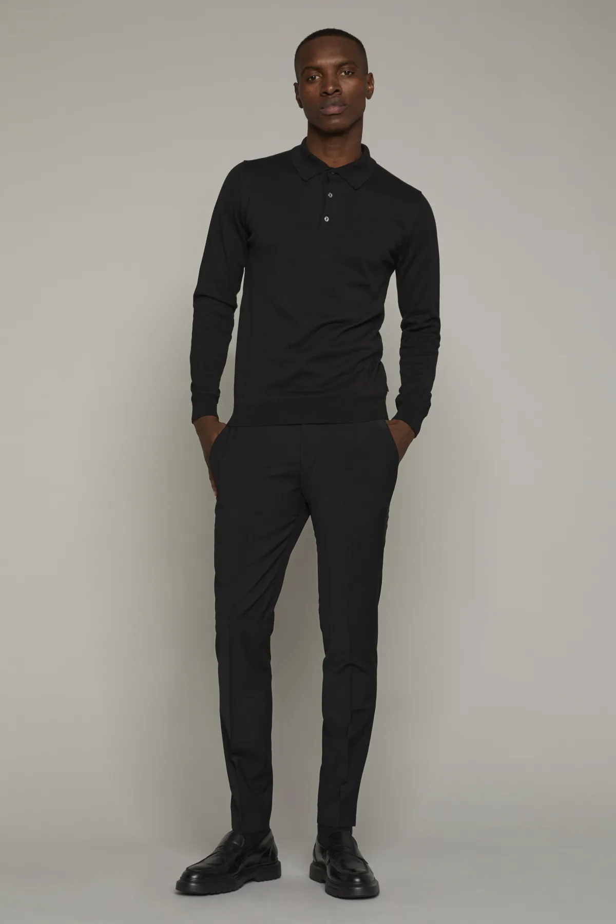 Deze lange mouwen gebreide poloshirt heeft een klassieke kraag, drieknoopsluiting en een glad, zacht voorkomen met rechte pasvorm.