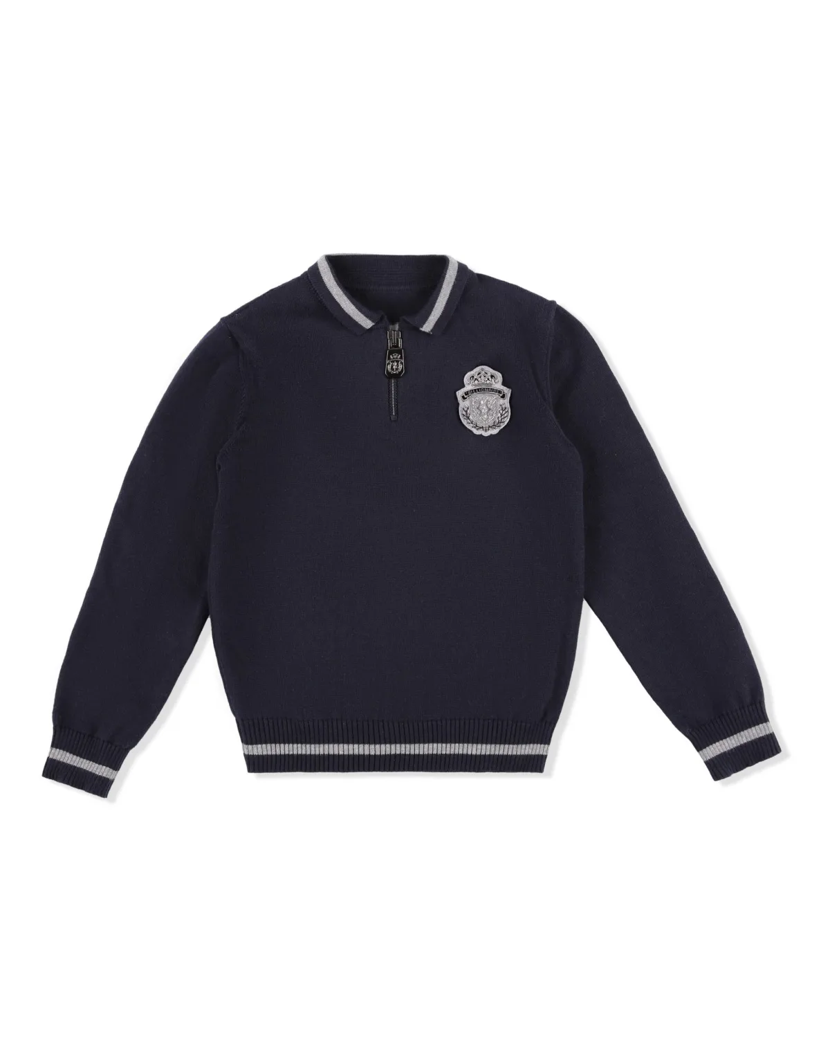Billionaire will not give up its coat of arms: one its most significant symbols. On this knitted woollen and cotton polo shirt it is embroidered on the patch sewn at left chest. Zip-up collar. Ribbed collar, cuffs and bottom hem with contrasting stripes.