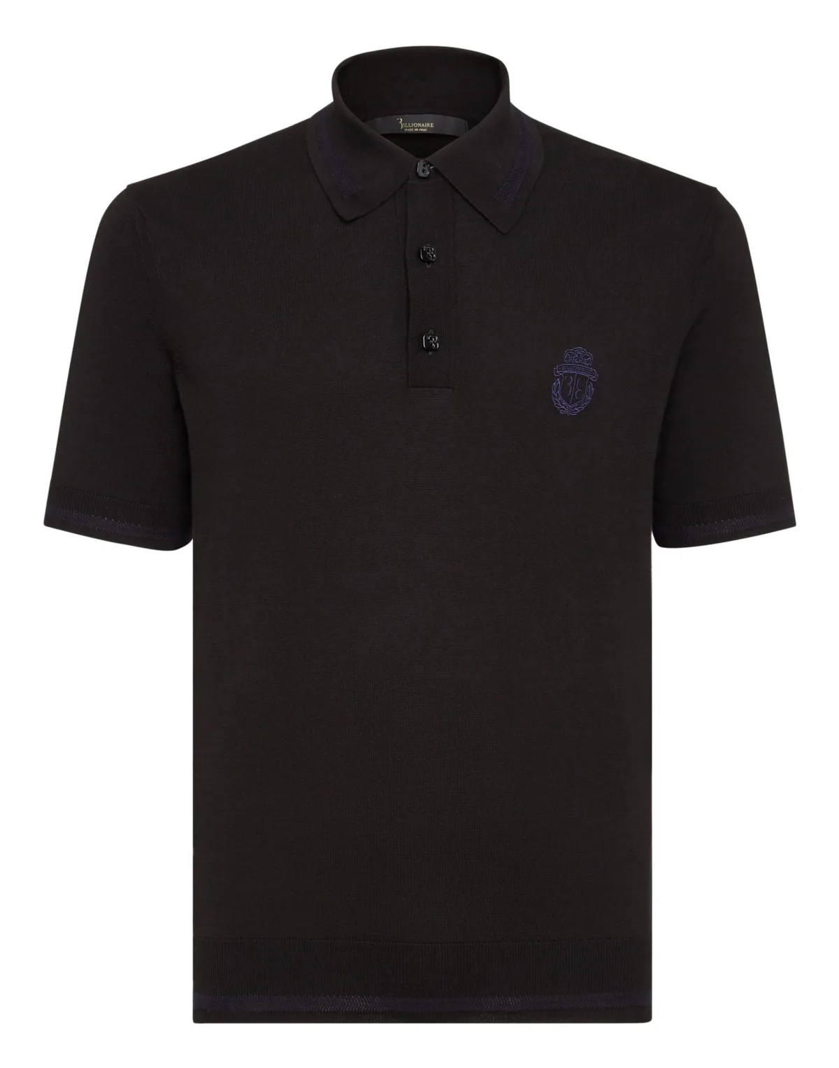 Billionaire heeft van zijn wapen een van zijn meest emblematische symbolen gemaakt. Op deze gebreide polo met korte mouwen van fijn katoengaren is het op de linkerborst geborduurd. Een ophanglus met het geborduurde monogram is op het juk genaaid. Verlaging op armsgaten. Echte parelmoeren knopen met logo op de kraagsluiting. Geweven geribde kraag, manchetten en onderkant met contrasterende strepen.