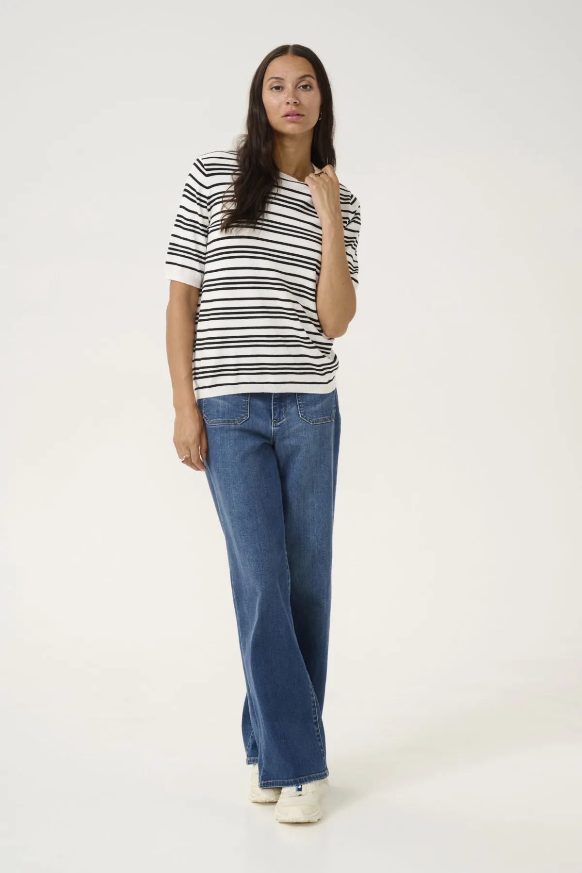 Design: Geribbelde kraag; Halstype: Boothals; Motief: Gestreept; Extra's: All-over patroon; Pasvorm: Normale pasvorm; Armlengte: Halve mouw; Lengte: Normale lengte
