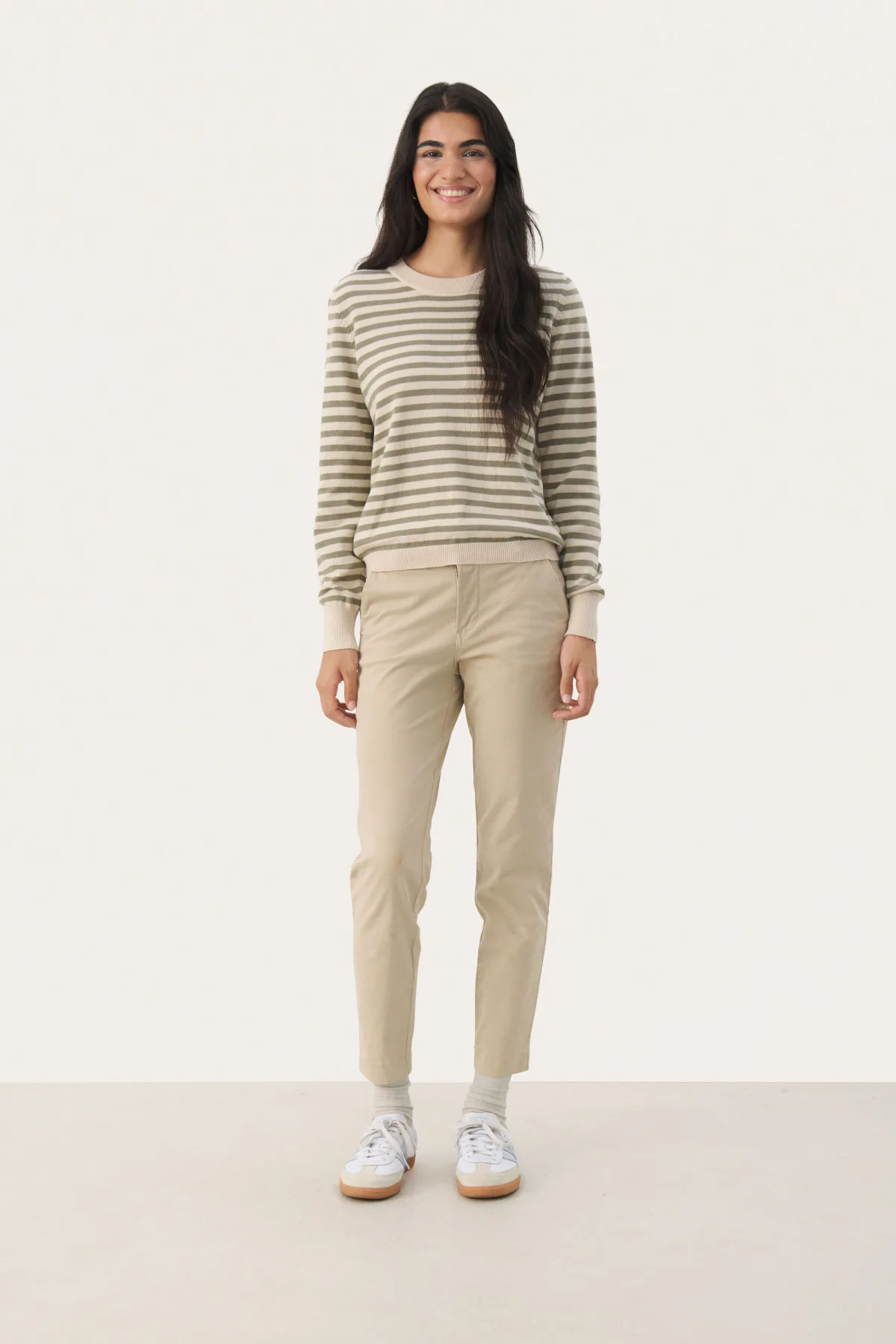 Gemakkelijk te breien trui voor dames met een tijdloze, rechte pasvorm en ronde hals. Lange mouwen en ribboorden zorgen voor comfort en veelzijdigheid, zowel voor alledaags gebruik als op het werk. Fijne was 30°, niet bleken, niet in de droger drogen, Liggend laten drogen in de schaduw, koud strijken max. 110° C, 100% Katoen (Organisch)
