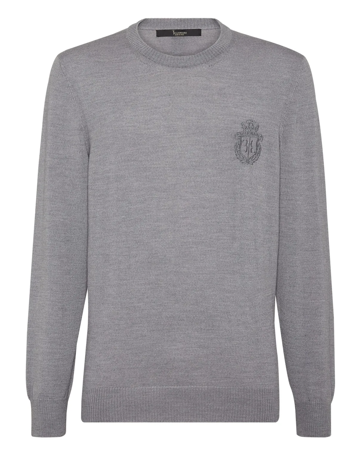 Explore new ways of expressing elegance with this season’s suggestions. Like this knit wool crewneck pullover. Look at the details. 12/14-gauge plain knit extrafine wool Crest embroidered at left chest The Brand initial embroidered on the hang loop sewn at yoke Rib knit hems