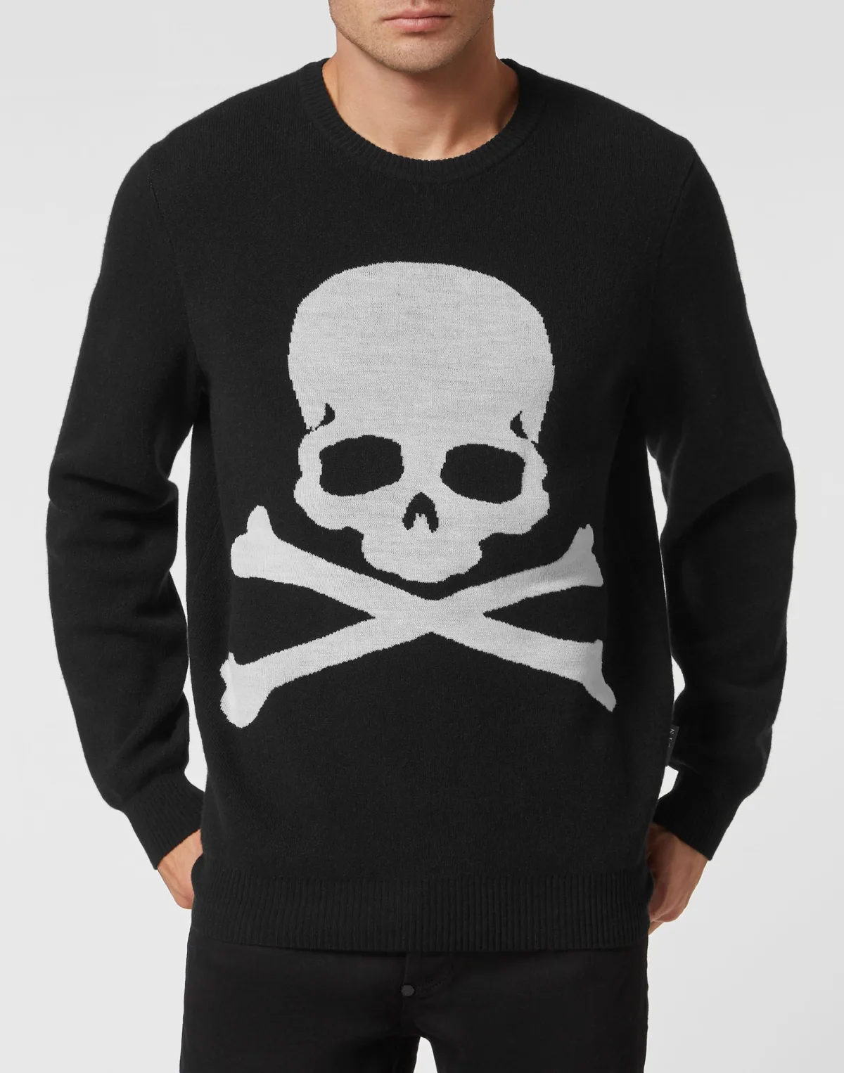Ook een effen pullover met ronde hals kan stijl en onderscheidend vermogen uitstralen. Zoals deze versie van zuiver wol met de iconische Skull&Bones-inlay. Ribgebreide zomen.