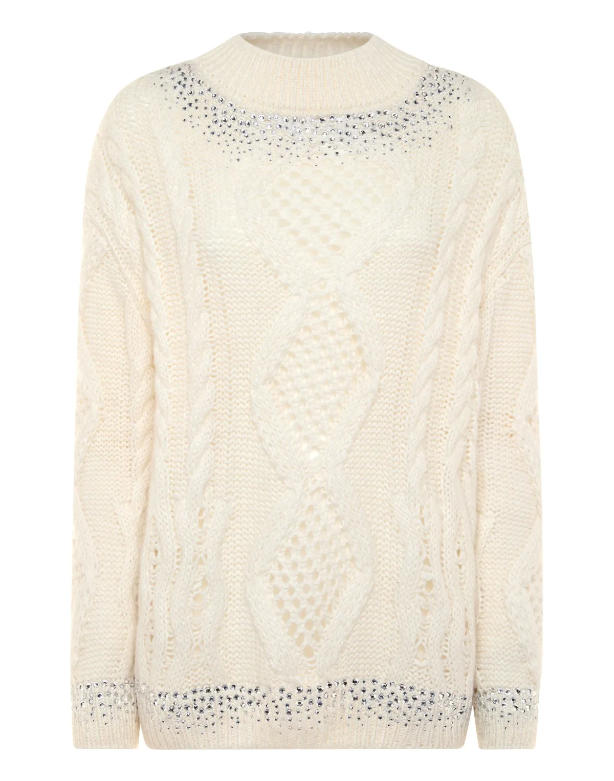 Verfraaid See the details on this knitround collar pullover with precious processes. Knit wool with some cable knit details Rhinestones applications Rib knit hems