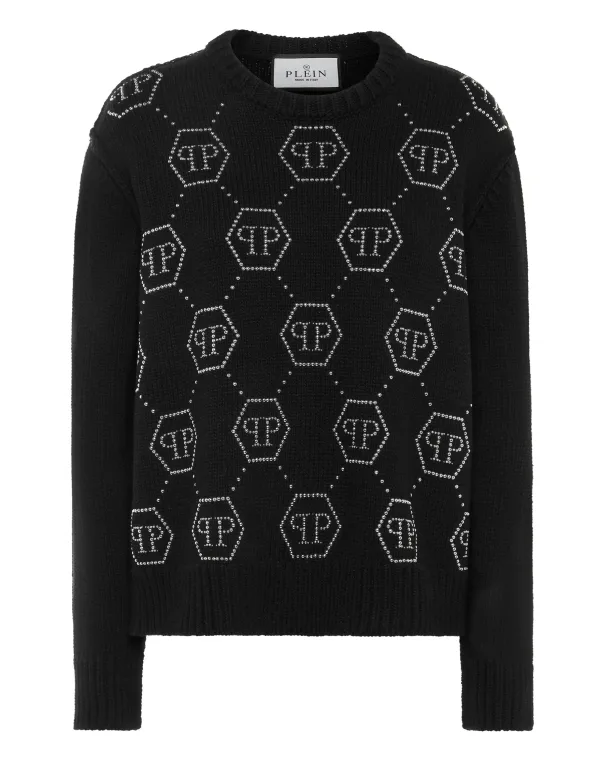 Moeiteloos geraffineerd met een grafische twist, brengt deze trui met monogram luxe comfort naar alledaagse kleding. Combineer hem met een getailleerde broek of een leren rok voor een verhoogde casual look. Zachte wolmix voor warmte en comfort All-over monogrampatroon voor een gedurfde Plein-identiteit Klassieke ronde halslijn met een strakke afwerking Geribde zomen verbeteren structuur en pasvorm Perfect laagjesstuk van overdag tot après-donker