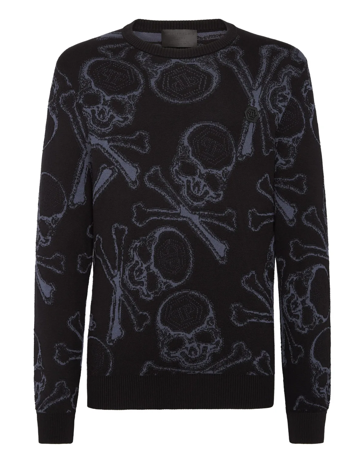 Innovatie en creativiteit zijn de wortels van de stijl van Plein. Ontdek de kenmerken van deze unieke katoenen crewneck-trui. Jacquardgebreid garen van zijde en wol Jacquardgebreide Skull&Bones met mat en glanzend effect PP Hexagon op een saffiaanleren patch opgenaaid op de linkerborst Label met logo opgenaaid op het juk Ribgebreide zomen
