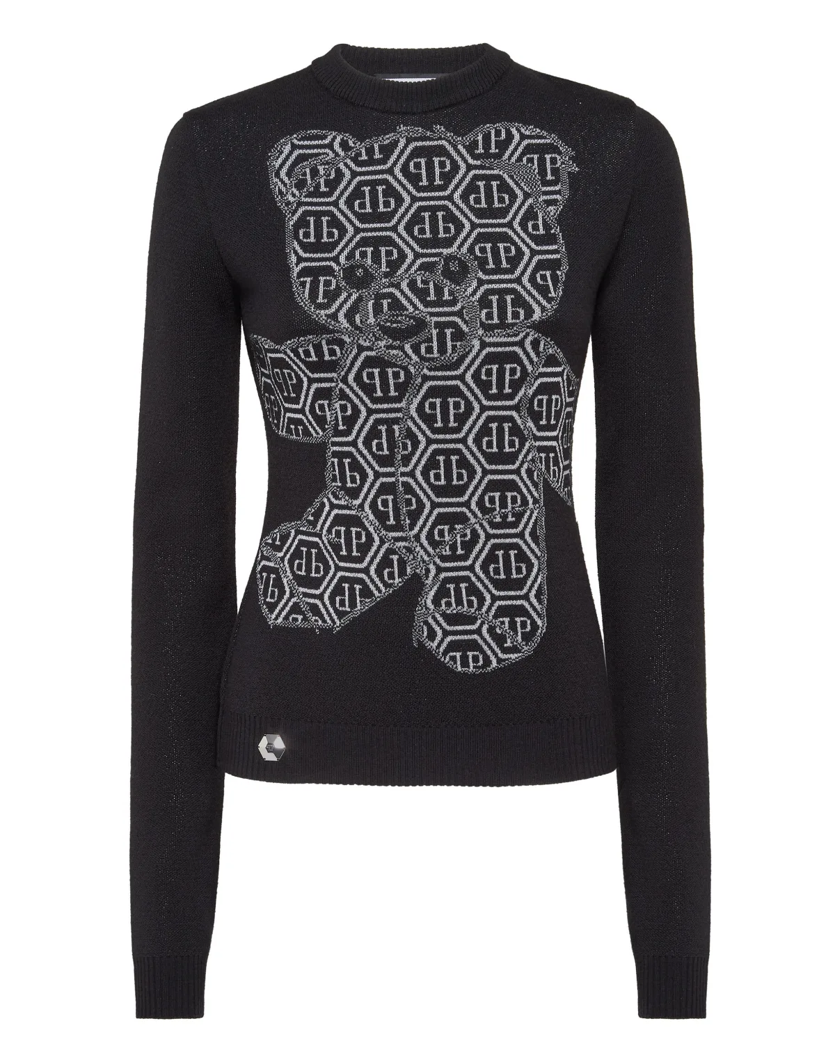 Speels maar uitdagend, deze strass teddybeer pullover verandert een gezellige klassieker in een gedurfd fashion statement met sprankelende flair en een brutale twist. Met kristallen versierd teddybeerontwerp voor opvallende glans. Zachte gebreide mix voor warmte met een vleugje stretch. Slanke pasvorm voor een slank, vrouwelijk silhouet. Geribde manchetten en zoom voor een verfijnde afwerking. Past moeiteloos bij hoog getailleerde denim of leren rokken.