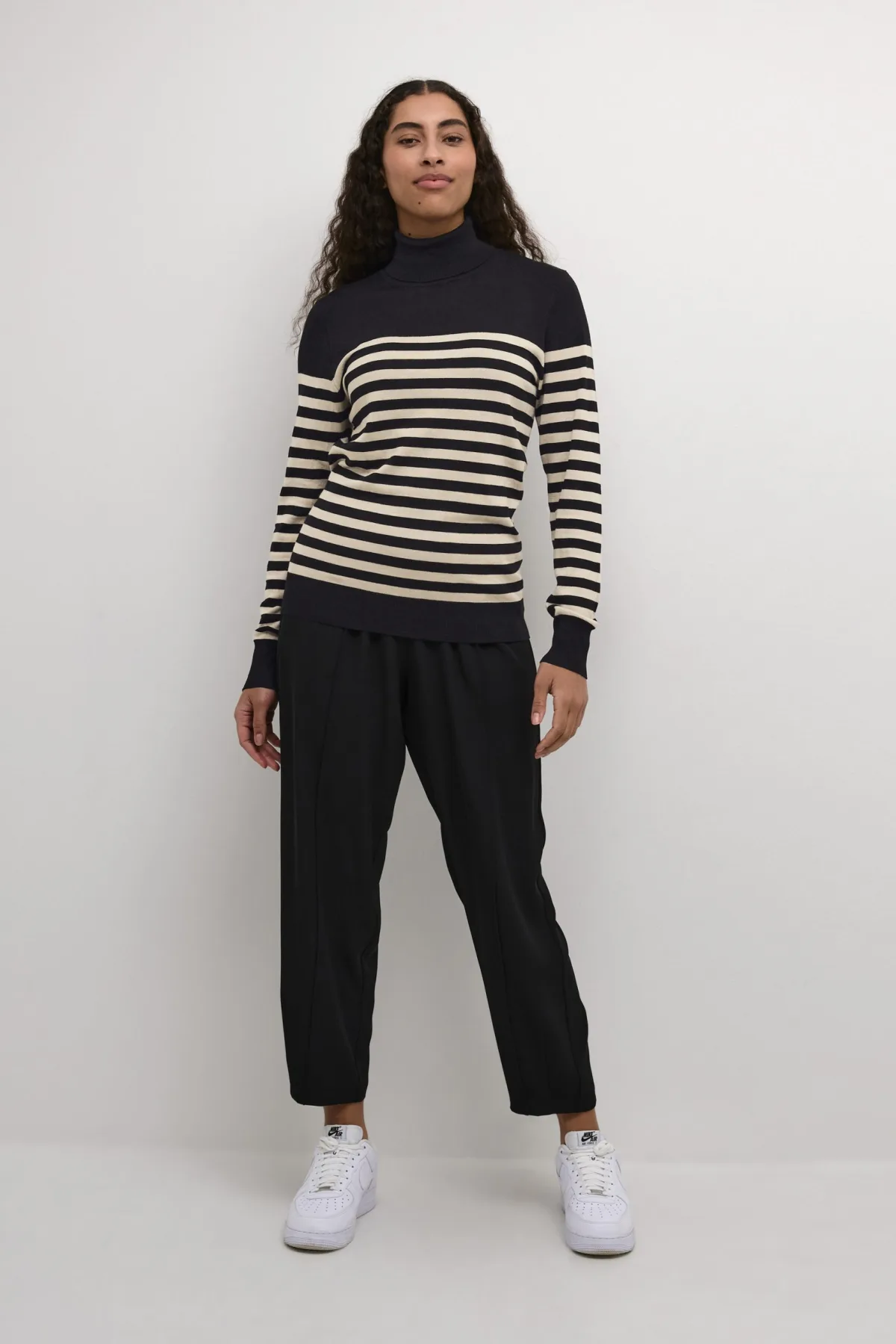 Kaffe Trui Kalizza Striped Roll Neck 10509063 106347 Blackfeather Gray...