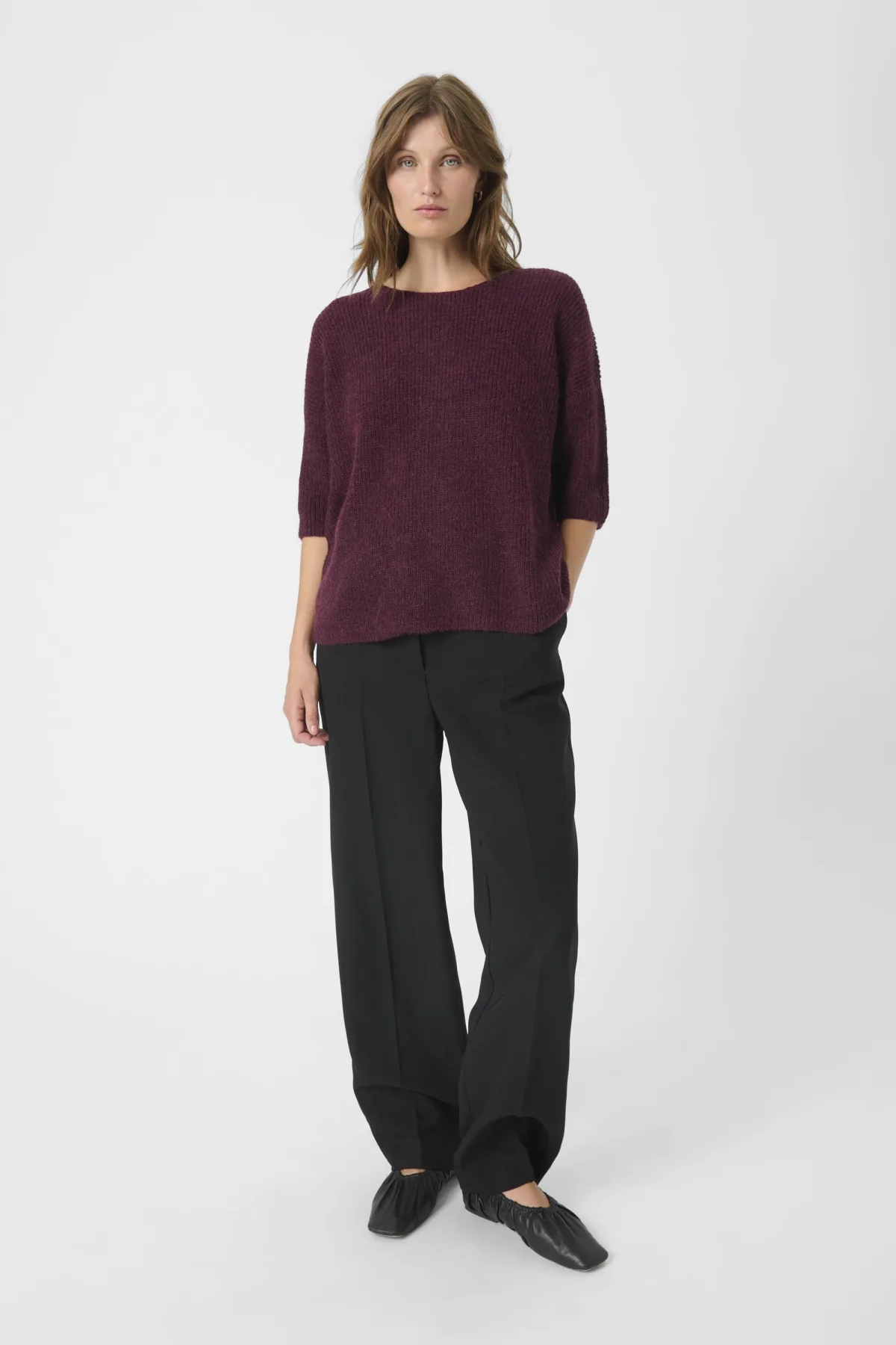 Deze gebreide trui heeft een rechte pasvorm, brede ronde hals en ellebooglange mouwen. De zachte, subtiele textuur onderstreept het minimalistische ontwerp.