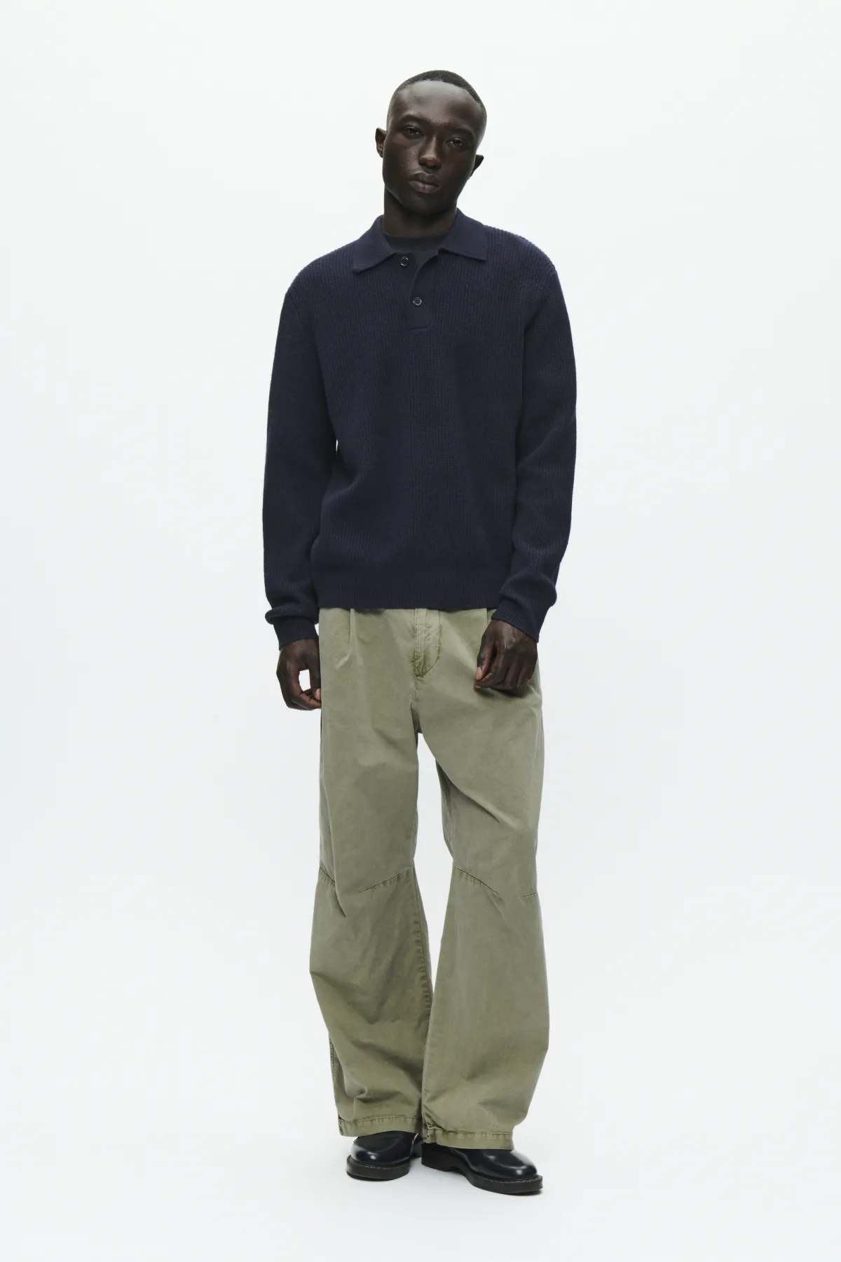 Gebreide polotrui met rechte pasvorm, een opvallende ribstructuur en klassieke kraag. Voorzien van knoopsluiting en lange mouwen.