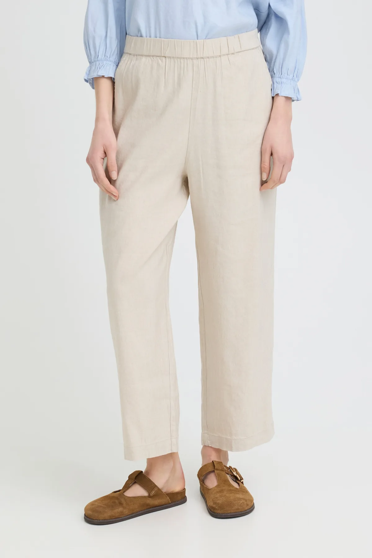 Design: Elastische taille/zoom, Zakken aan de zijkant; Materiaal: Linnen; Motief: Mélange; Extra's: Op staal naden; Lengte: 7/8 lengte; Pasvorm: Wide leg; Taillehoogte: Mid waist