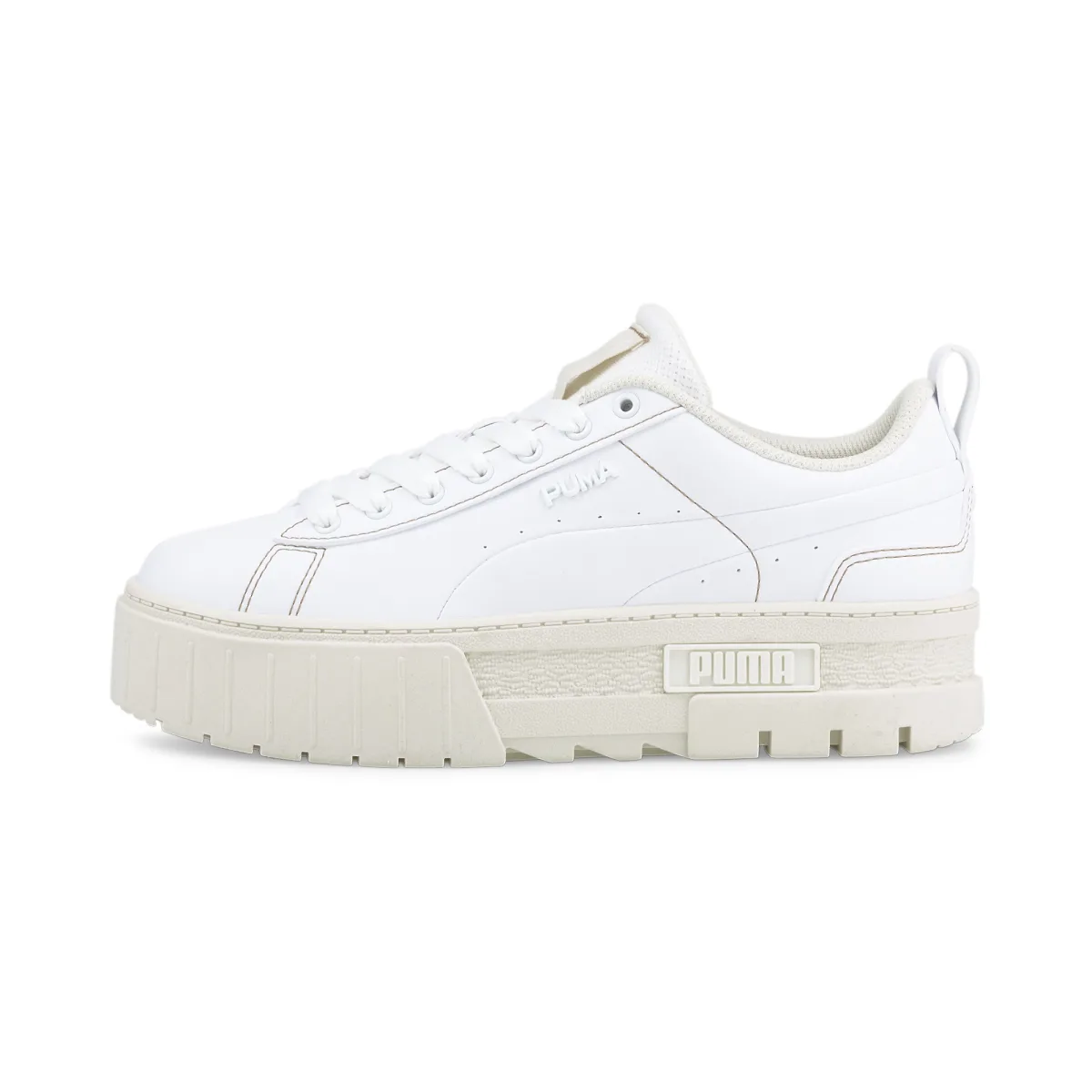 PRODUCT VERHAAL Geniet van een slanke, alledaagse stijl in onze Mayze-lijn. Deze opvallende schoen is een liefdesbrief aan de klassieke Californische skate- en surfcultuur, met een gestapelde zool en strakke, gereduceerde details. Met één stap in deze schoenen waan je je in de hoogtijdagen van Dogtown. Onze Mayze Infuse Trainers vieren de schoonheid van duurzaamheid, door gebruik te maken van natuurlijke texturen en materialen voor een strakke, eigentijdse look. Kenmerken & voordelen Gerecycled materiaal: Het bovenwerk van deze schoen is gemaakt van ten minste 20% gerecycled materiaal als een stap naar een betere toekomst DETAILS Lage laarsconstructieNegan lederen bovenwerkRubberen tussenzoolRubberen buitenzoolMesh tong met doorschijnend mono mesh aan de bovenkantVetersluitingPUMA metalen pin op kwartpaneelPUMA Wordmark aan zijkantGeperforeerde PUMA Formstrip aan zijkantSilky-feel tonaal geweven PUMA label op tong