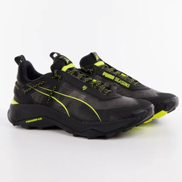 Puma Explore Nitro herensneakers, zwart synthetisch. Authentieke Puma-schoen - streetwear/sportswear design van Puma - Puma voor heren, modieus en perfect voor dagelijks gebruik - de zwarte Puma-sneaker past perfect bij de rest van je garderobe - comfortabel synthetisch materiaal - klassieke veters - Explore Nitro - synthetisch