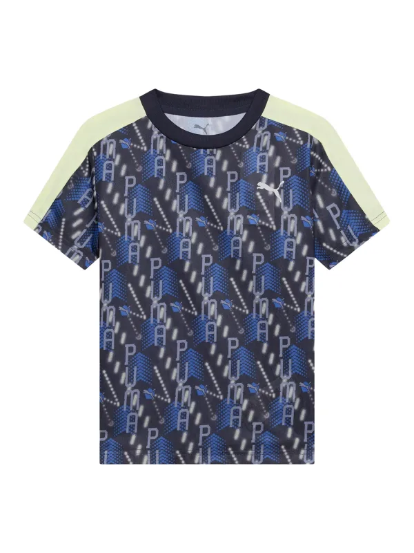 PUMA Functioneel shirt ‘TAD ESS AOP Poly’ duifblauw / donkerblauw / grijs / kiwi