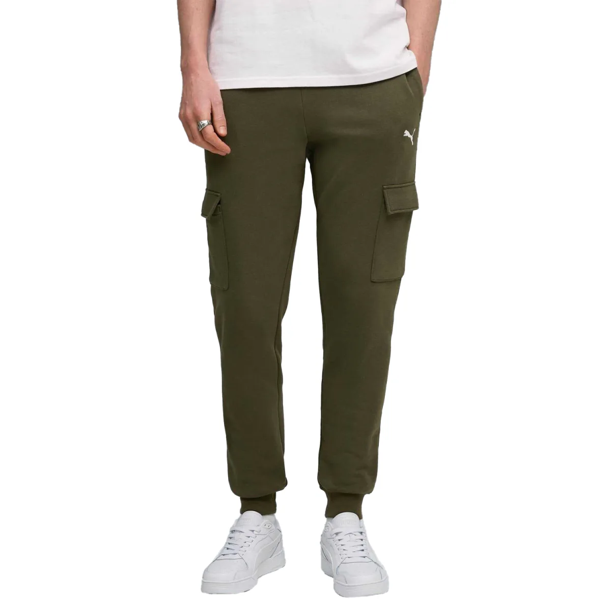 Puma Heren Fleece Cargo Broek met Klein Logo (Olijf) Prijzen