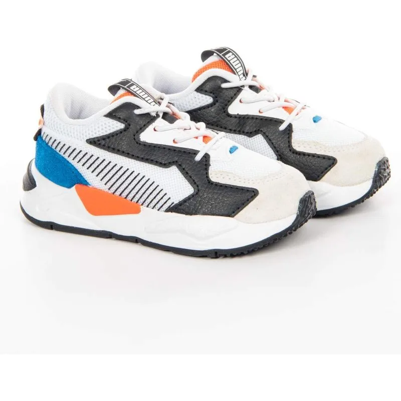 Puma RS Z Top AC inf sneakers voor jongens, wit synthetisch. Authentieke Puma schoen - streetwear/sportswear design van Puma - Puma voor modebewuste jongens, perfect voor dagelijks gebruik - deze witte Puma sneakers passen perfect bij de rest van je garderobe - comfortabel synthetisch materiaal - klassieke veters - RS Z Top AC inf - synthetisch