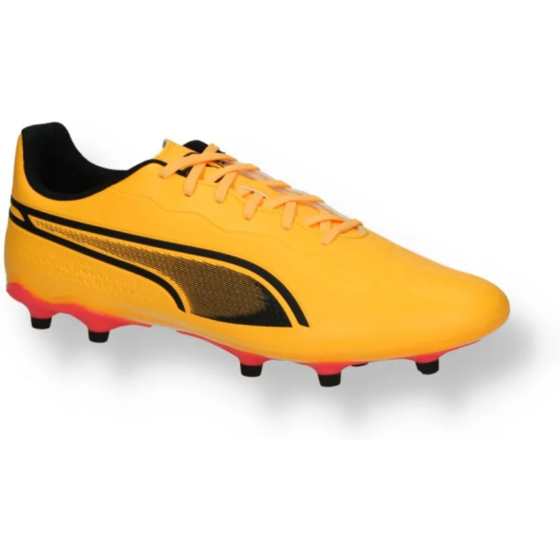 Puma King Match FG/AG - 107570 Nog nooit was controle zo comfortabel. De KING, een icoon dat door verschillende generaties is omarmd, keert terug met een opvallend design en innovatieve materialen die zowel de speler als de planeet ten goede komen. Dit omvat het splinternieuwe K-BETTER™-bovenwerk, dat gerecycled materiaal gebruikt en toch een kenmerkend gevoel, comfort en stretch biedt. De lichtgewicht zool met externe hielkap, stabiliserend profiel en conische noppen geeft je volledige bewegingsvrijheid om de bal onder controle te houden. ALLE INS EN OUTS Het bovenwerk van deze schoen is gemaakt met minstens 30% gerecycled materiaal, als een stap richting een betere toekomst. DETAILS Superzacht en duurzaam bovenwerk van microfiber. Lichtgewicht TPU-zool met conische noppen. Ontworpen voor harde ondergrond/kunstgras (FG/AG). MATERIAALGEGEVENS Tussenzool: 100% Synthetisch Voetbed: 100% Textiel Zool: 100% Rubber Bovenwerk: 100% Synthetisch Voering: 100% Textiel