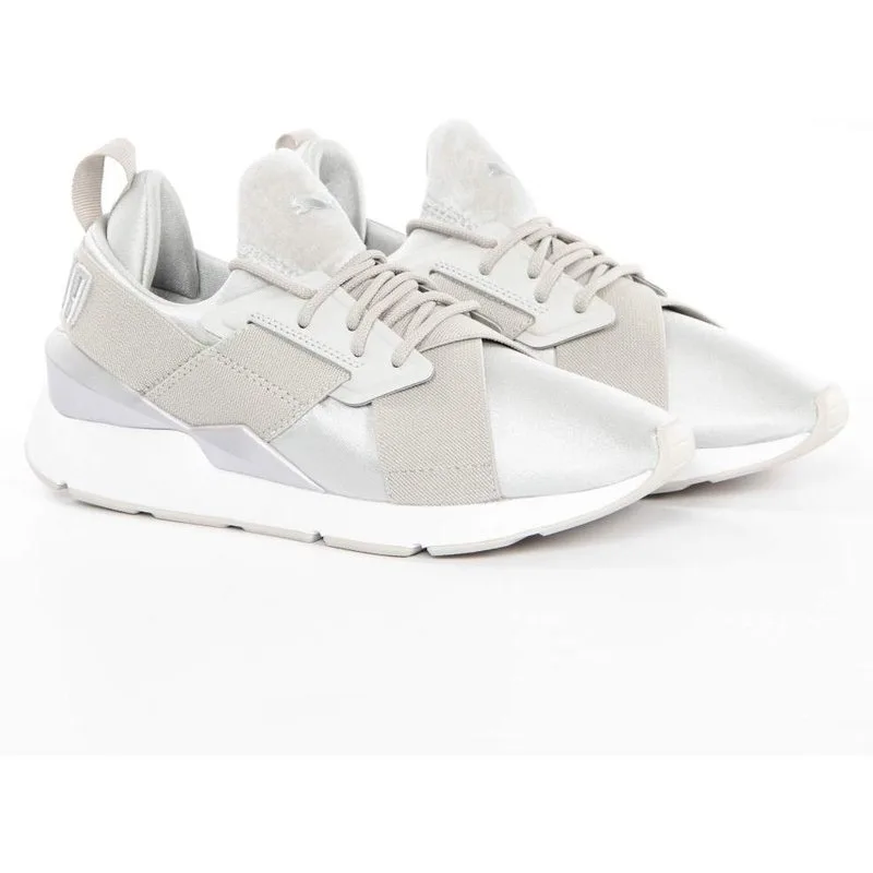 Puma Muse Satin II damessneakers, grijs synthetisch. Authentieke Puma-schoen - streetwear/sportswear-stijl design van Puma - Puma voor modebewuste vrouwen, perfect voor dagelijks gebruik - grijze Puma sneakers vormen een perfecte aanvulling op je garderobe - comfortabele synthetische materialen - klassieke veters - Muse Satin II - textiel.