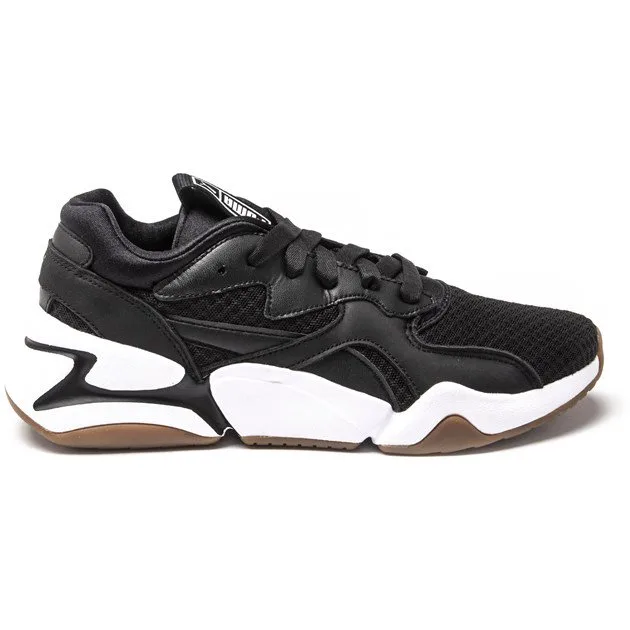 Fris je garderobe op met de Nova 90's Bloc damessneakers van Puma. De gladde zwarte leren veterschoen heeft ook een dikke retro rubberen zool voor een modieuze afwerking.