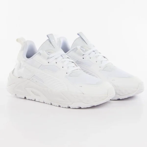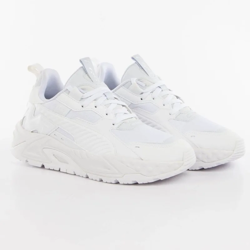 Puma RS-Trick Base herensneakers, wit synthetisch. Authentieke Puma-schoen - streetwear/sportswear design van Puma - Puma voor modebewuste mannen, perfect voor dagelijks gebruik - witte Puma sneakers passen perfect bij de rest van je garderobe - comfortabele synthetische materialen - klassieke veters - RS-Trick Base - synthetisch