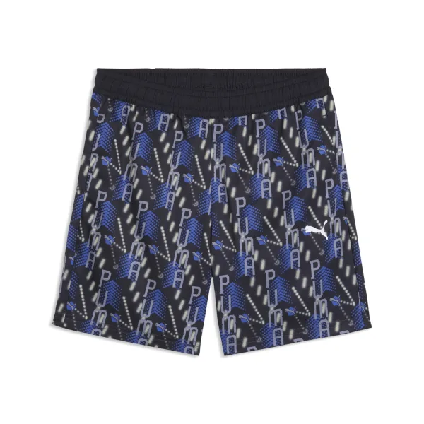 Design: Gevoerde zoom/rand; Voering: Niet gevoerd; Motief: Logoprint; Extra's: All-over patroon; Details: Elastische broekband; Lengte: Kort/mini; Pasvorm: Regular