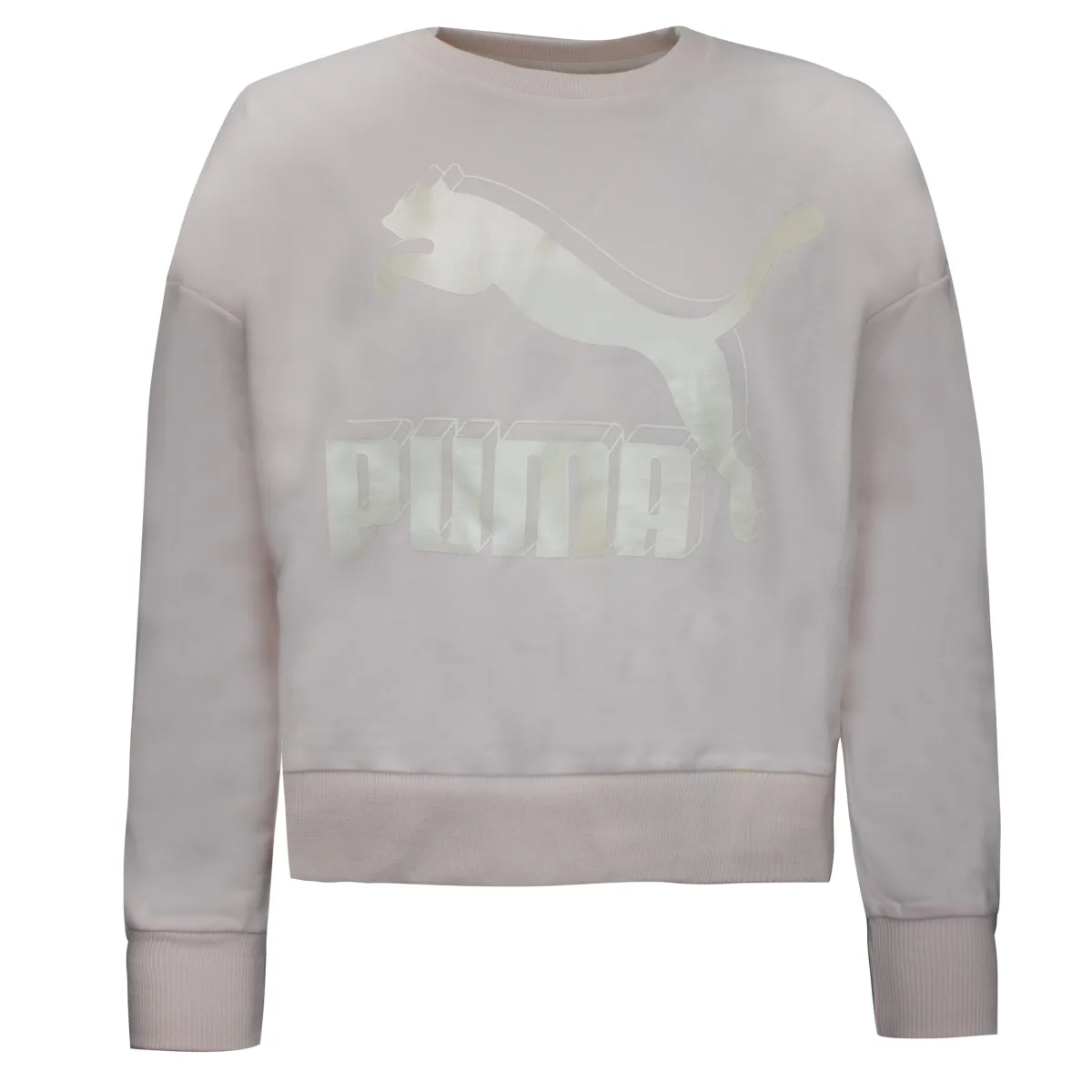 Puma Womens Classics Logo Metallic Crew Sweatshirt Rose 597405 87