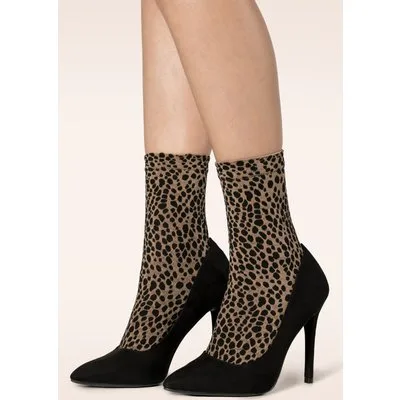 Specificaties: Punti Leopard sokjes in zwart en camel