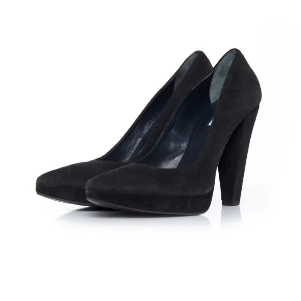 Aanbevolen verkoopprijs Balmain, Zwarte suède plateauhakken met puntige neus. Dit exemplaar is weinig gedragen en verkeert in goede staat. • STAAT: goede staat • MAAT: 36 • LENGTE BINNENZOOL: 24 cm • HAK: 11 cm PLATFORM: 1,5 cm • MATERIAAL: suède • KLEUR: zwart • ARTIKELNUMMER: 3548