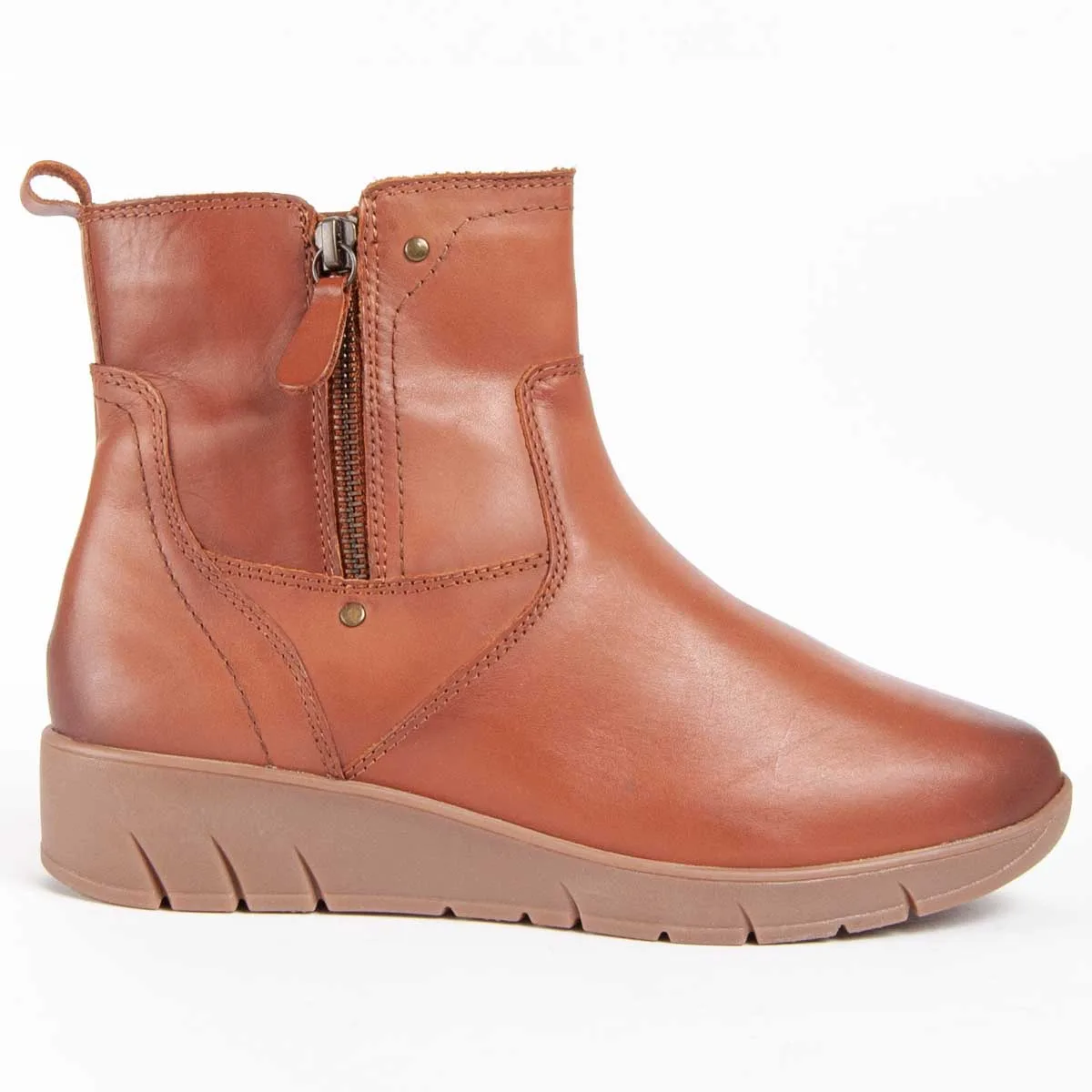 Purapiel garantie, 10 jaar garantie. Casual enkellaarsje voor dames. Gemaakt van 100% natuurlijk leer, vrij van chroom VI. Hoogwaardige materialen. Gevoerde binnenzool. Gemaakt door andere merken voor ons merk. Afmetingen bij benadering: 15 cm hoge schacht en 8 cm brede schacht.