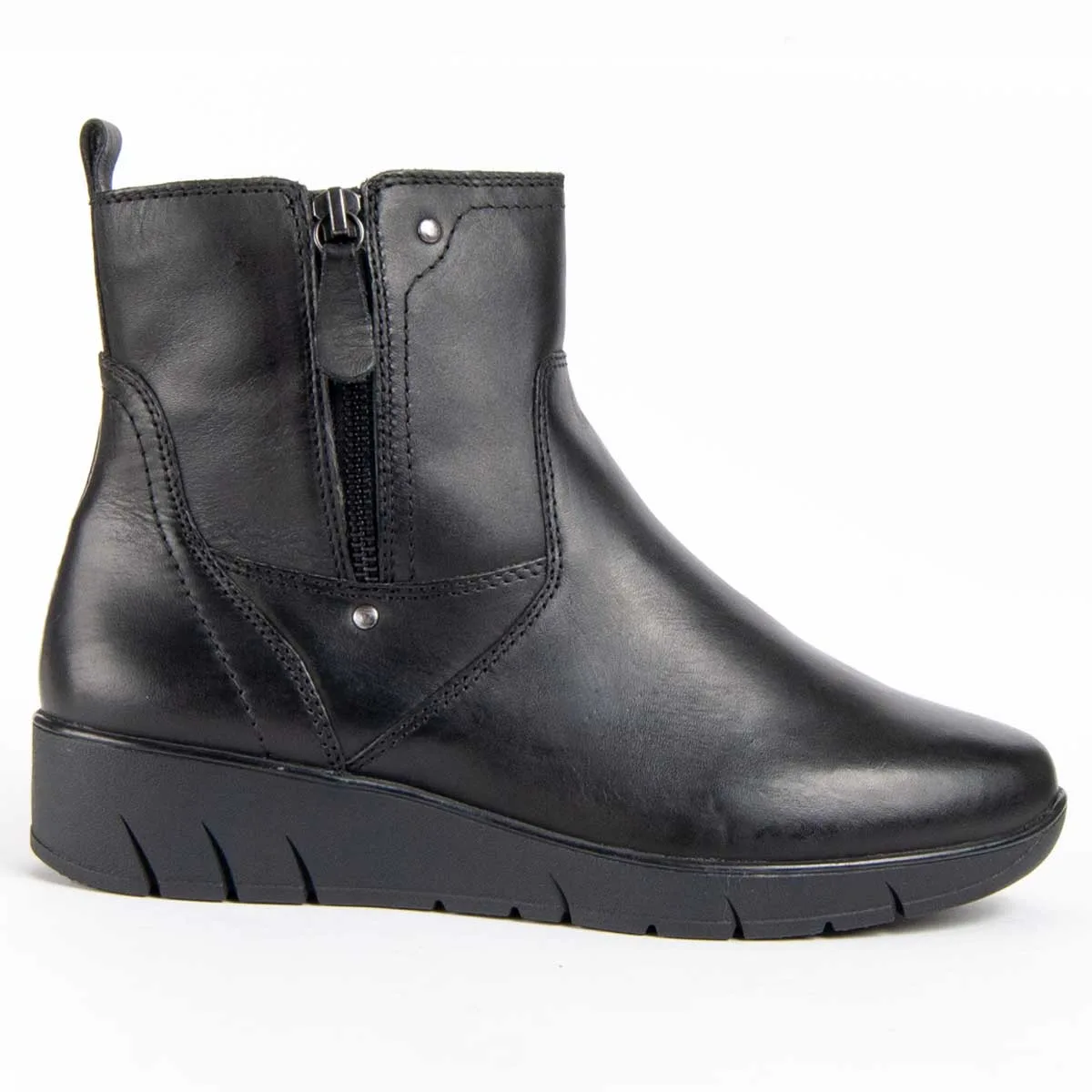 Purapiel garantie, 10 jaar garantie. Casual enkellaarsje voor dames. Gemaakt van 100% natuurlijk leer, vrij van chroom VI. Hoogwaardige materialen. Gevoerde binnenzool. Gemaakt door andere merken voor ons merk. Afmetingen bij benadering: 15 cm hoge schacht en 8 cm brede schacht.