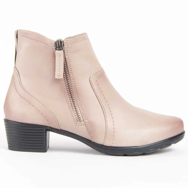 Purapiel garantie, 10 jaar garantie. Enkellaarsjes voor dames. Gemaakt van 100% natuurlijk leer, chroom VI vrij. Hoogwaardige materialen. Gevoerde binnenzool. Gemaakt door andere merken voor ons merk. Afmetingen: 5 cm hak, 15 cm hoog en 8 cm breed.