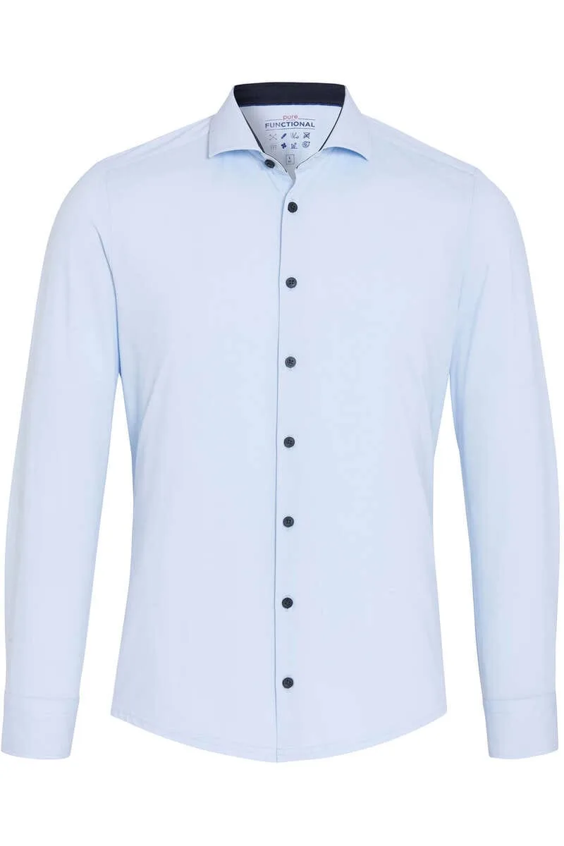 Pure Functional Slim Fit Jersey shirt lichtblauw, Effen