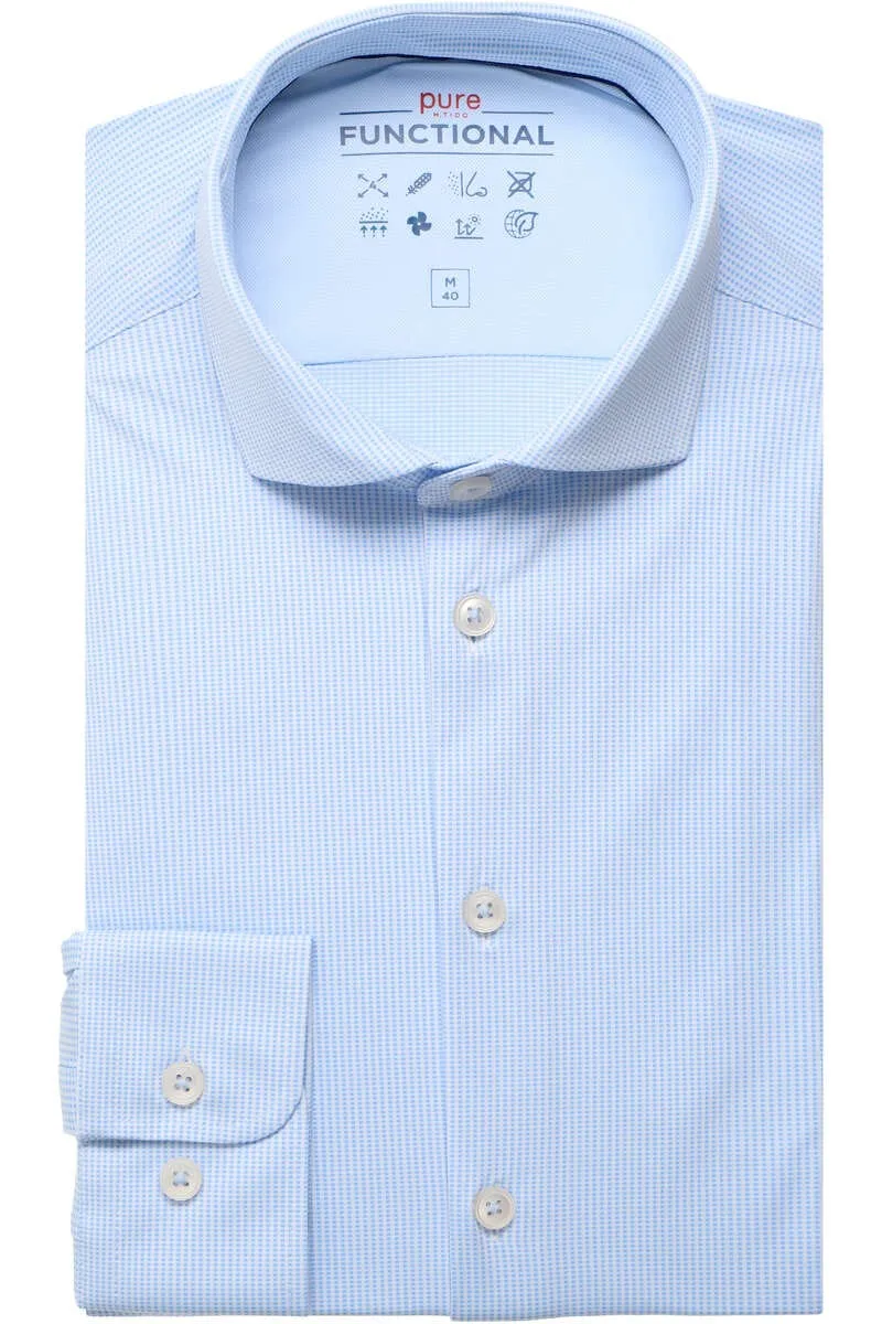 Pure Shirts Functional Lange Mouw Overhemd Micro Print Light Blue...