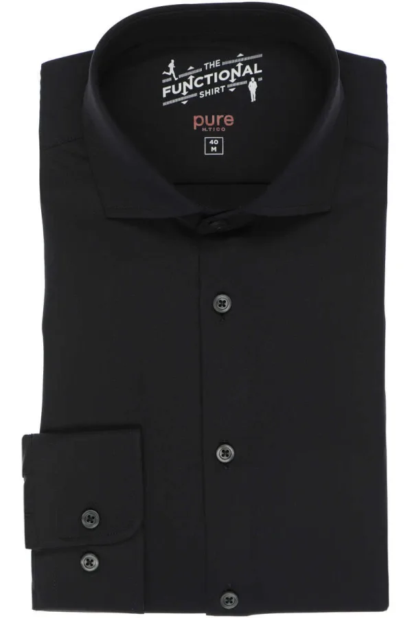 Op zoek naar hoge kwaliteit Heren Overhemden om je kledingkast mee aan te vullen? Met deze Overhemd van Pure heb je altijd een goed Overhemd in huis. De Pure H.Tico The Functional Shirt Zwart is heel geschikt!Pure H.Tico The Functional Shirt Zwart in de kleur Zwart met een pasvorm Slim-fit is gemaakt van Super stretch, Nylon en Stretch met een Effen dessin en Lange mouw