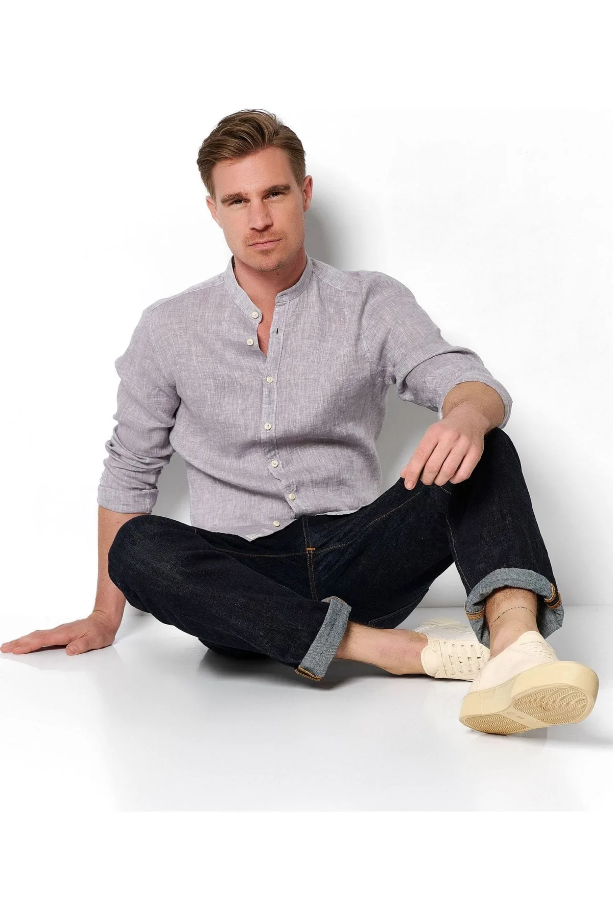 Lange mouw (normaal), 100% Linnen, Mao collar kraag Enkel manchet, Linnen, Zonder borstzak, Decoratieve band in kraag, 30 graden