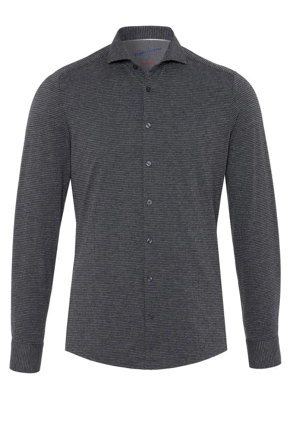Op zoek naar hoge kwaliteit Heren Overhemden om je kledingkast mee op te vullen? Met deze Overhemd van Pure heb je altijd een goed Overhemd in huis. De Pure The Functional Shirt Print Antraciet is heel geschikt!Pure The Functional Shirt Print Antraciet in de kleur Antraciet en Grijs met een pasvorm Slim-fit is gemaakt van Nylon en Stretch met een Print dessin en Lange mouw