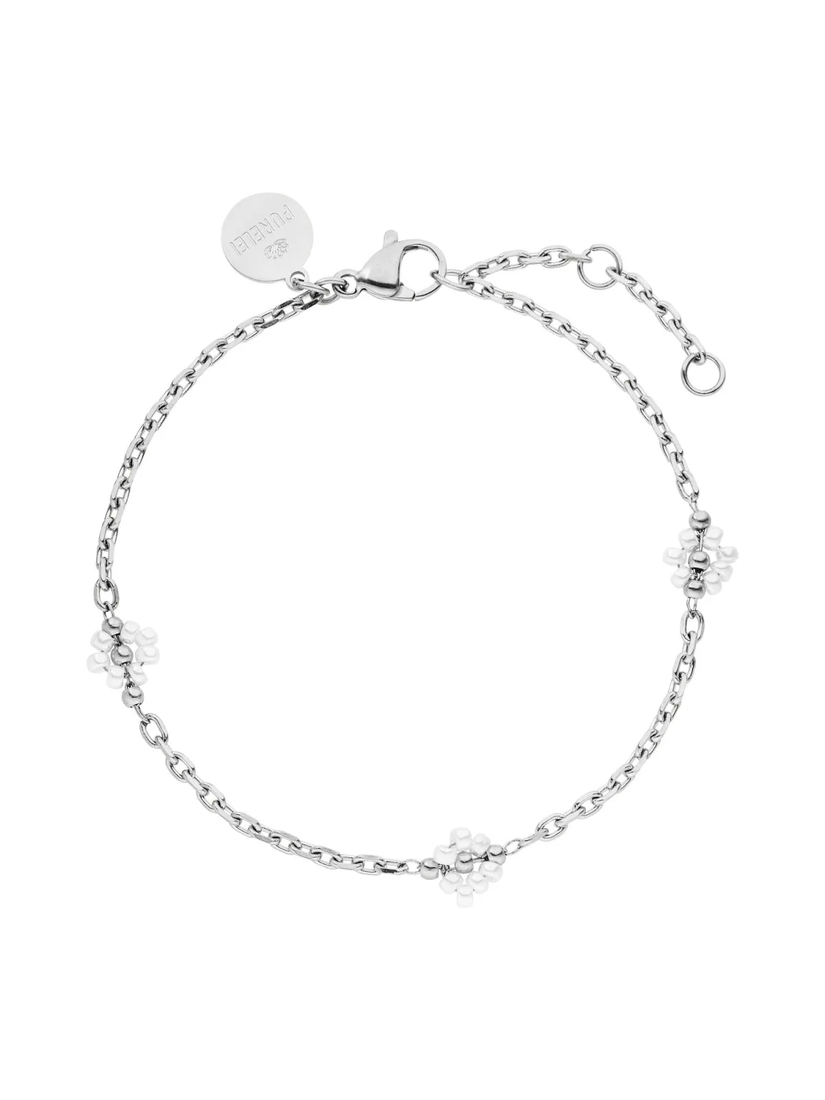Specificaties: PURELEI Armband ‘Linen Blossom’ zilver / parelwit