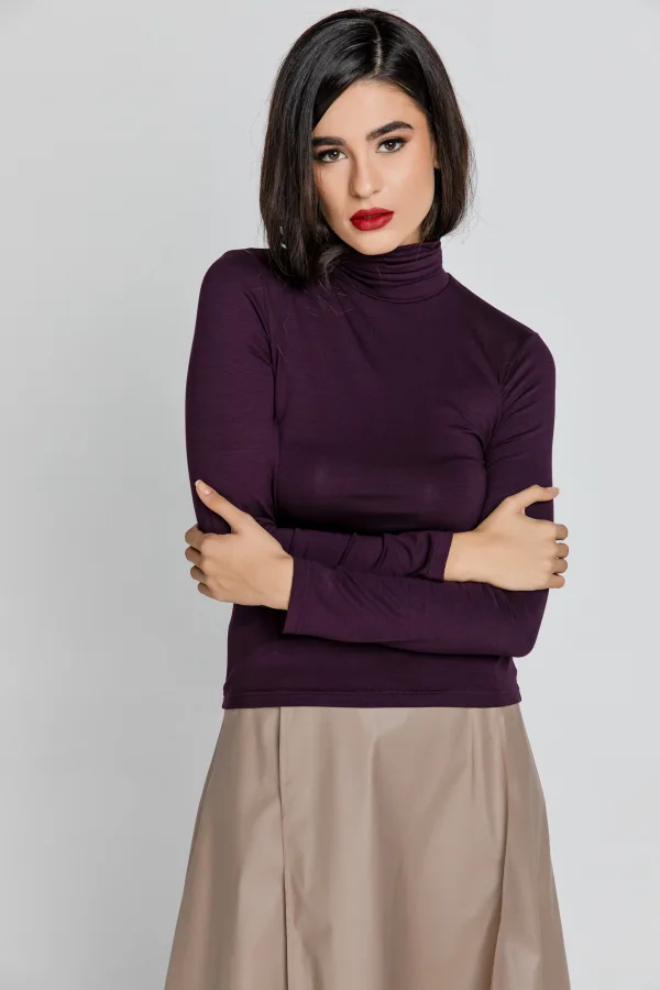 Purper trui met polokraag en lange mouwen